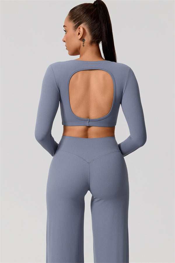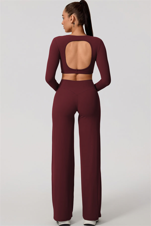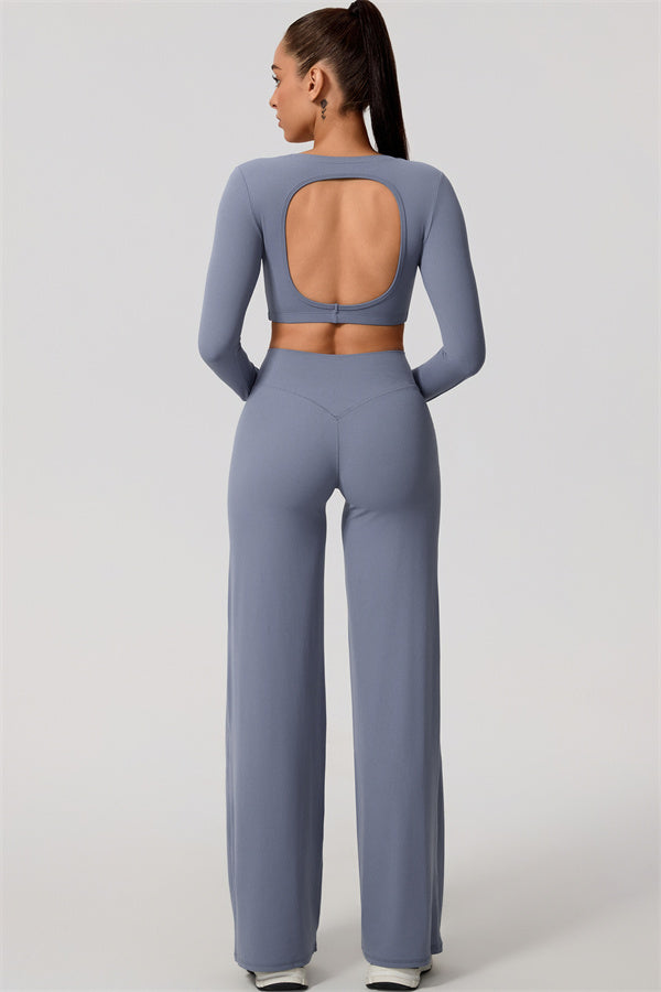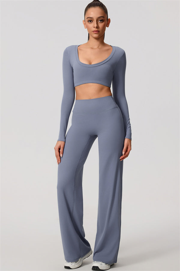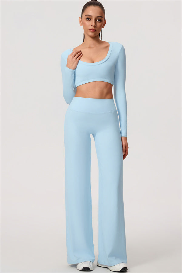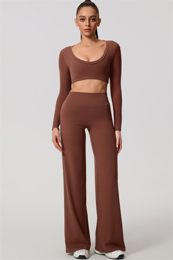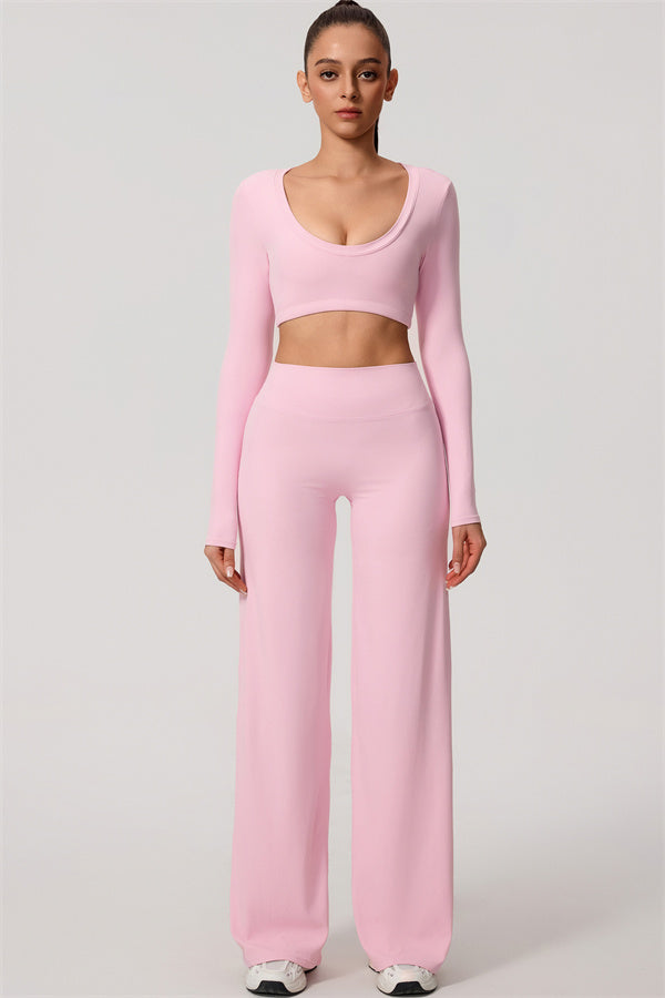 The Nestle Long Sleeve Crop Top Straight Leg Pants 2-Piece Set