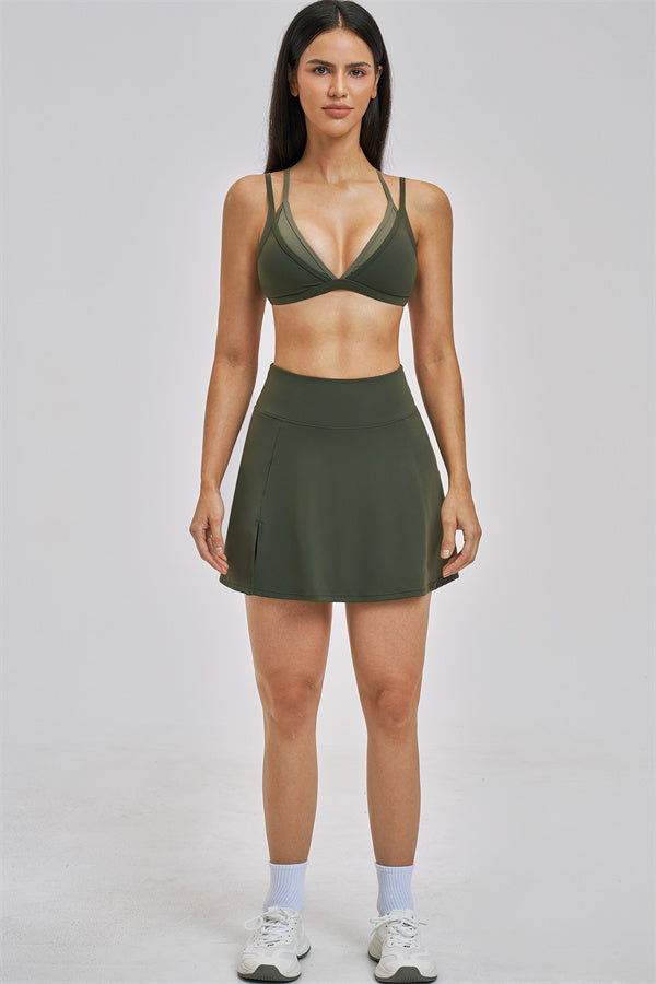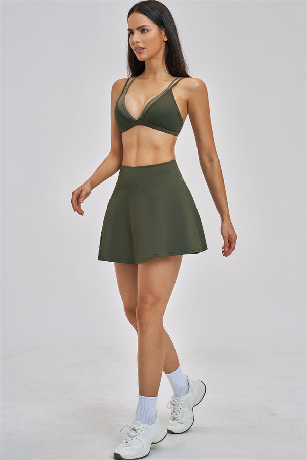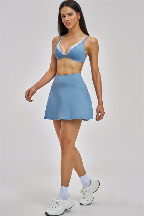 The Seraphine Layered V Sports Bra Skirt 2-Piece Set