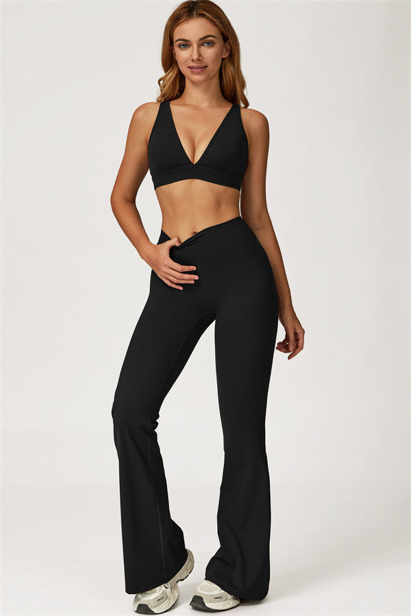 The Bold Cross Back Sports Bra Flared Leggings 2-Piece Set