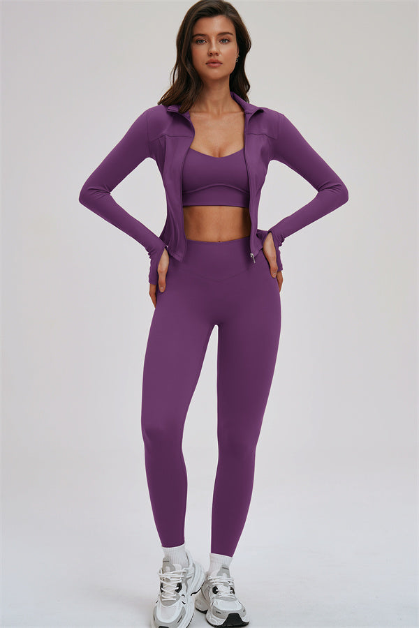 The Kinetic Zip Jacket Cross Back Sports Bra Leggings 3-Piece Set