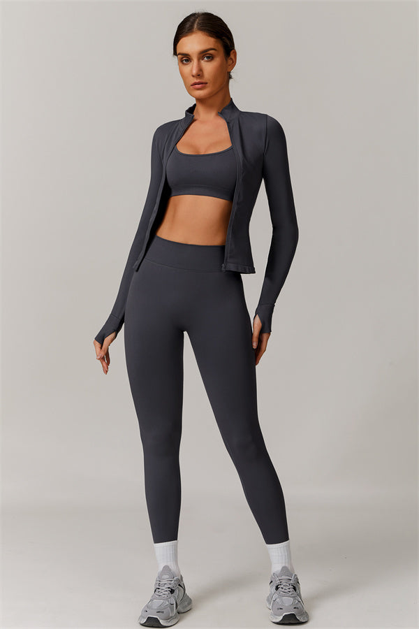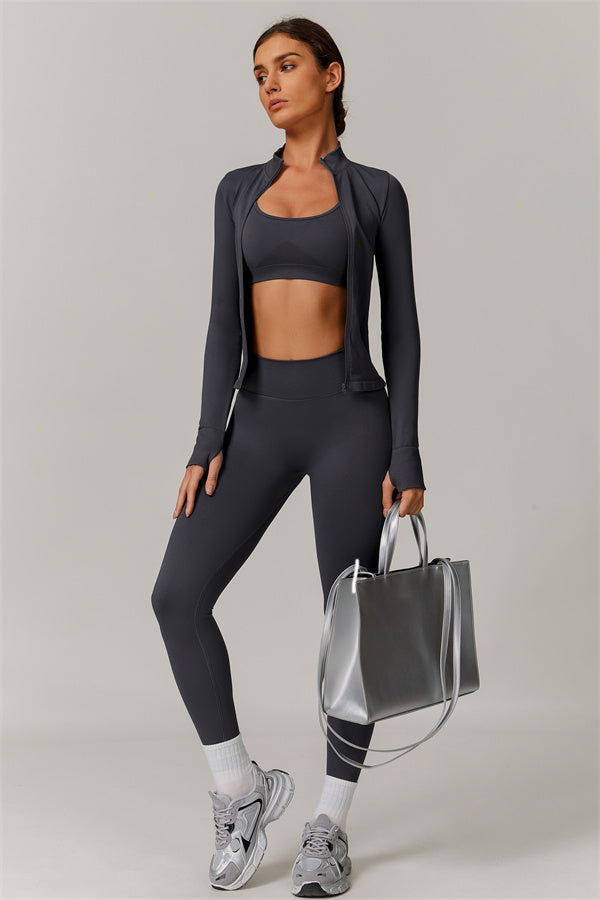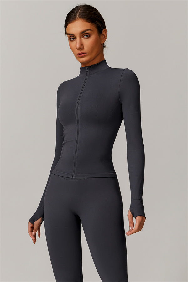 Equipped with thumbhole cuffs, this jacket ensures a secure fit that prevents slipping and keeps your hands protected during intense workouts.