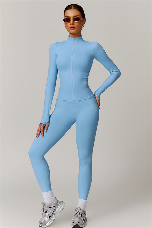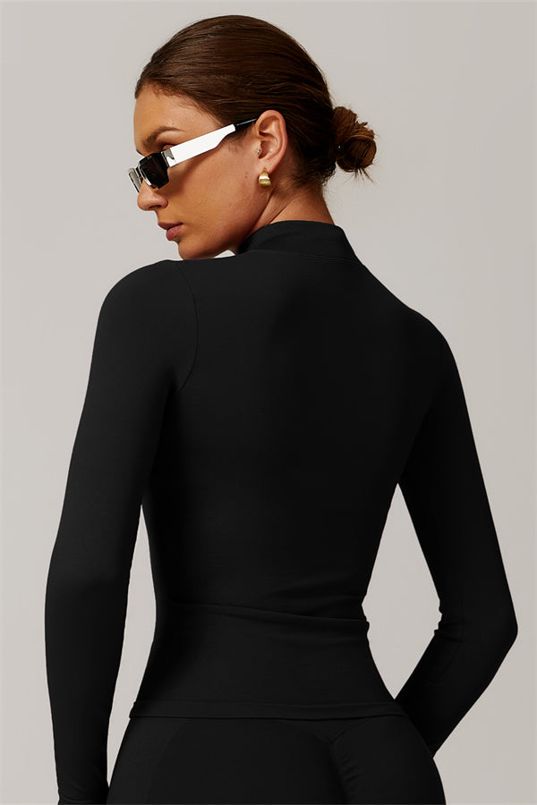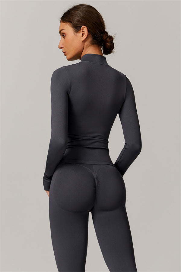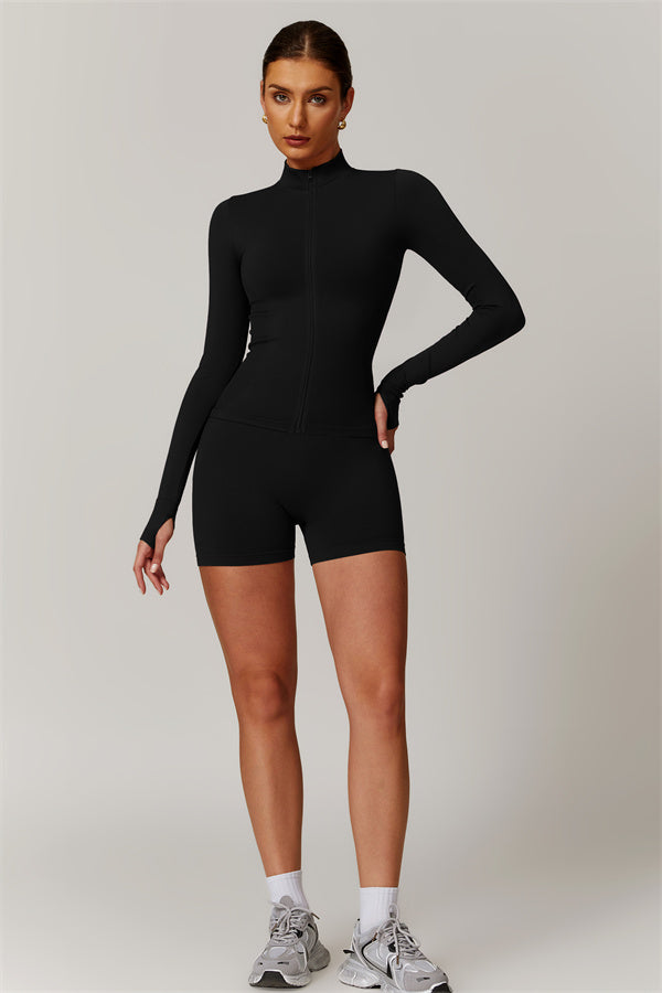 Stay stylish and protected with our sleek high-collar full-zip jacket, designed for ultimate versatility in any workout. The full-zip design allows for easy wear and removal, while the windproof features provide a cool, edgy look without sacrificing functionality.