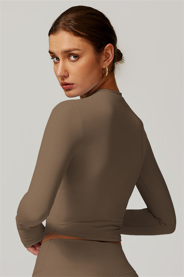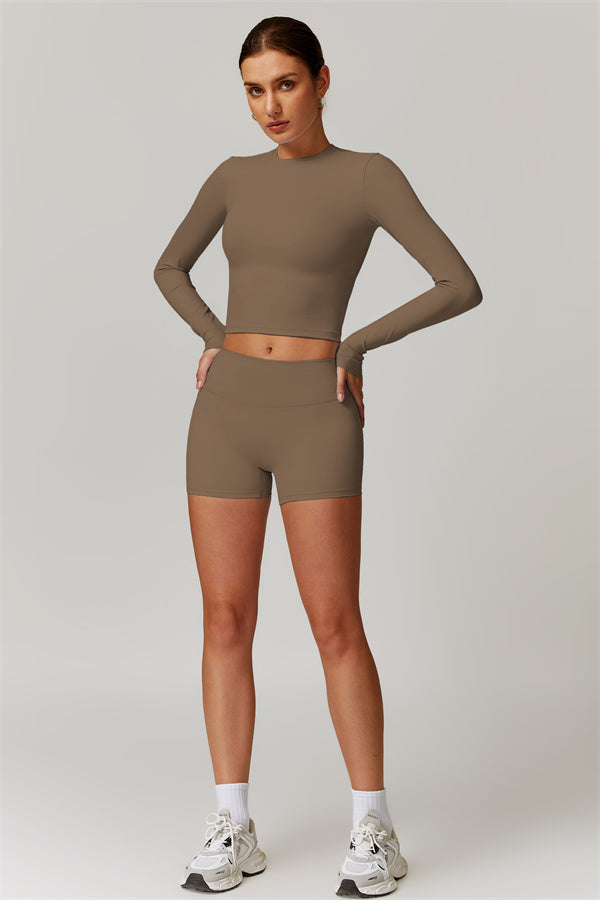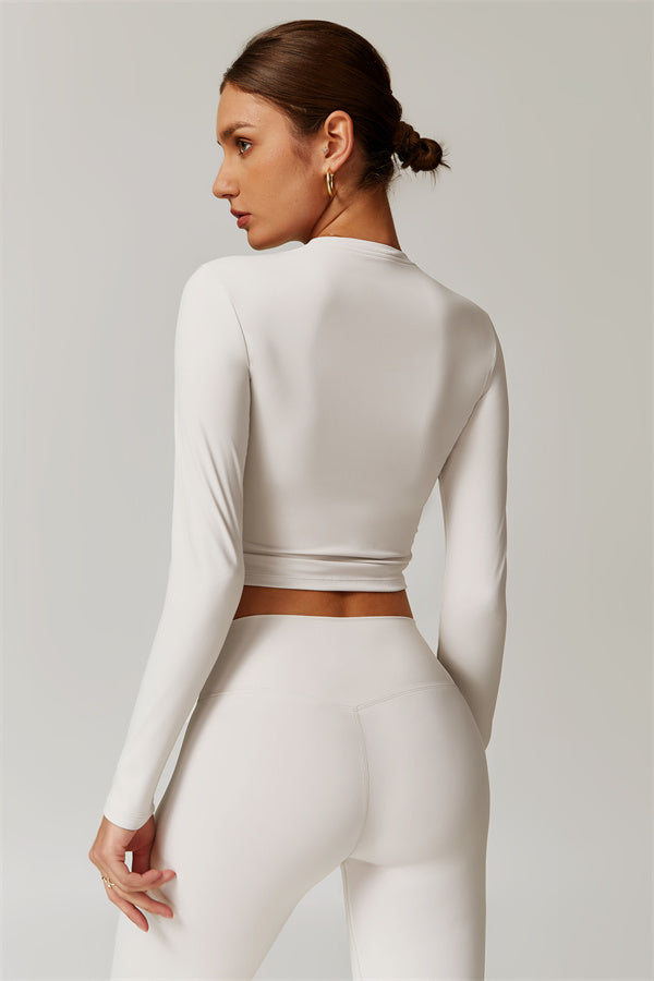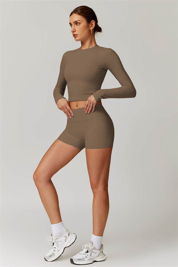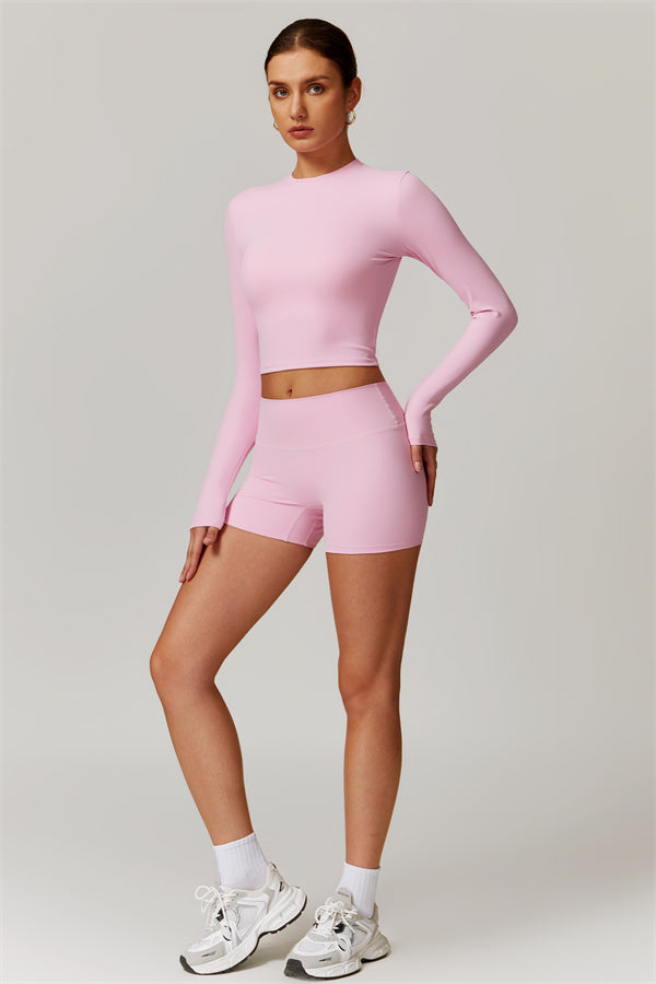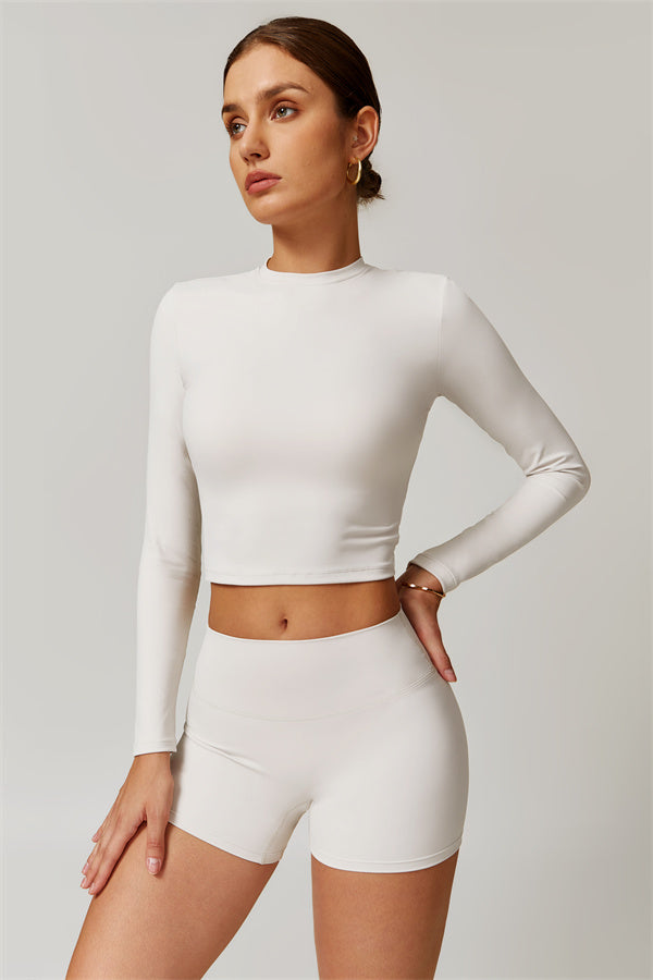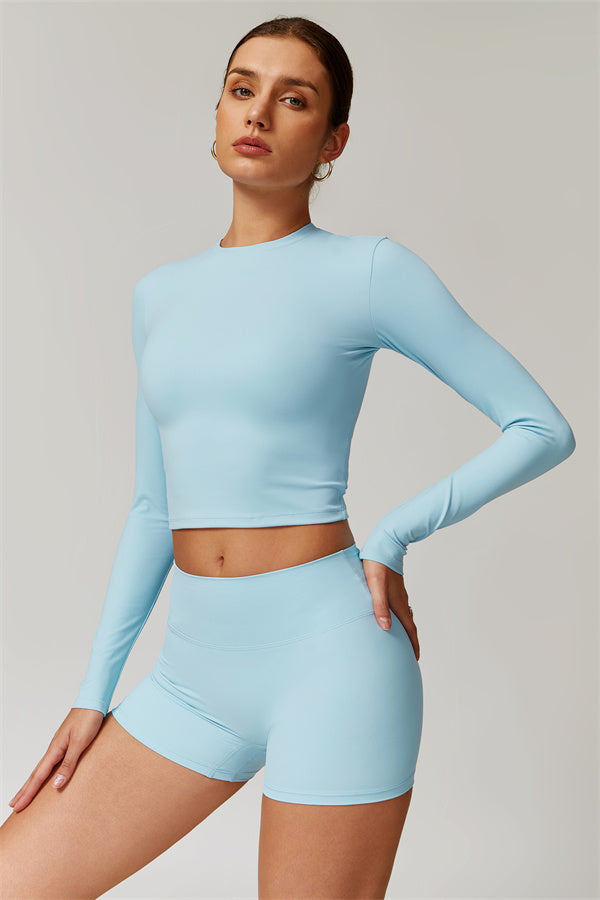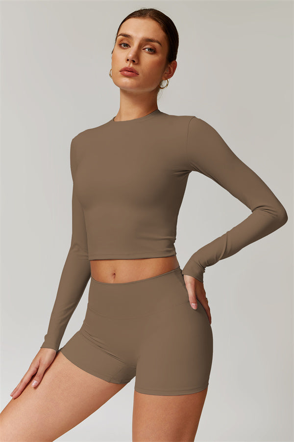 Featuring an extended hem that provides a comfortable and flattering fit. The gentle compression design subtly smooths your midsection while highlighting your waistline for a beautifully shaped silhouette. With a classic round neckline that enhances your neckline, this top combines style and functionality seamlessly.