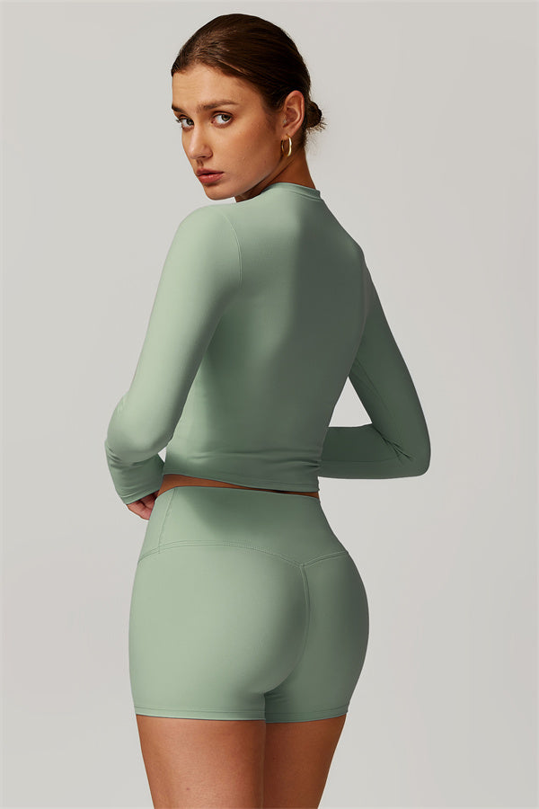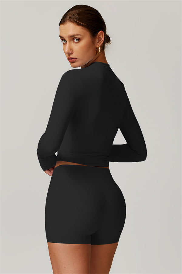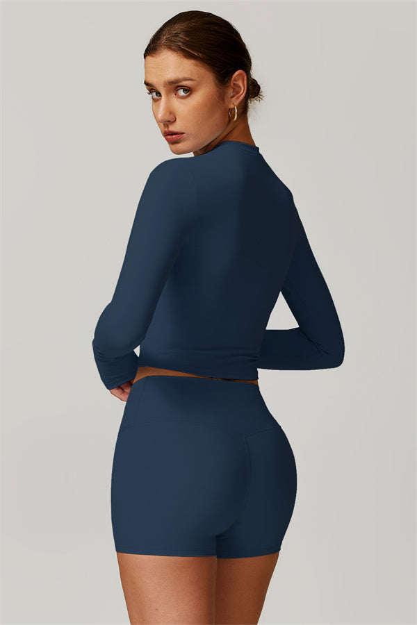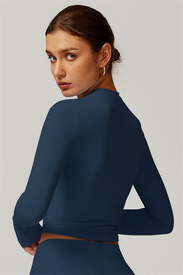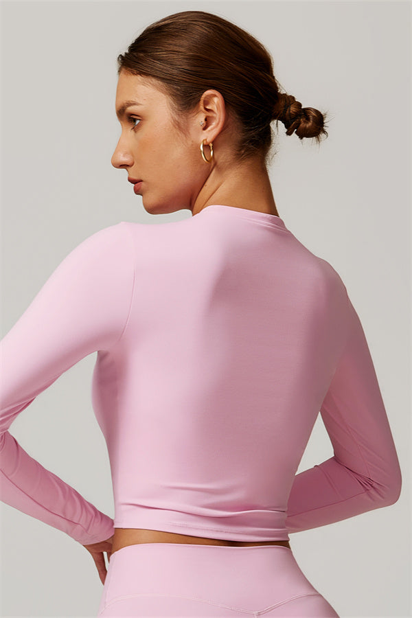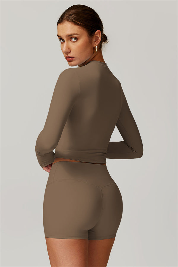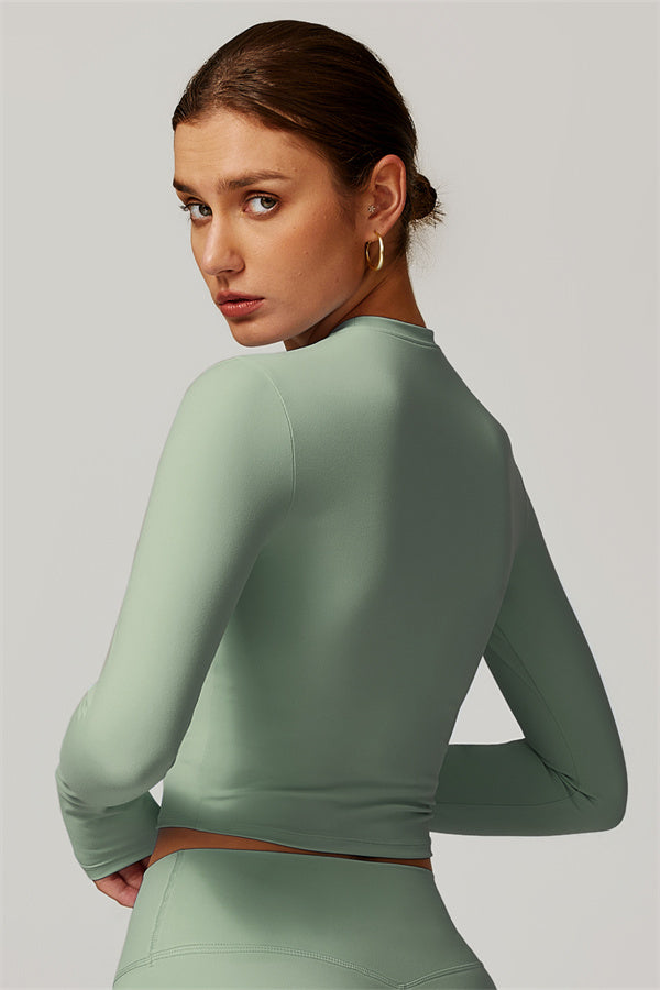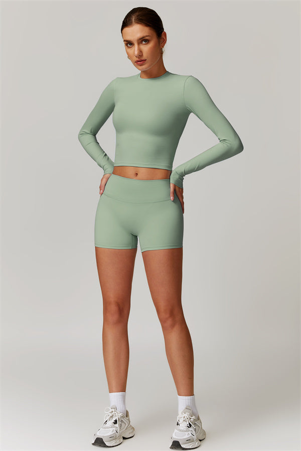 Featuring an extended hem that provides a comfortable and flattering fit. The gentle compression design subtly smooths your midsection while highlighting your waistline for a beautifully shaped silhouette. With a classic round neckline that enhances your neckline, this top combines style and functionality seamlessly.