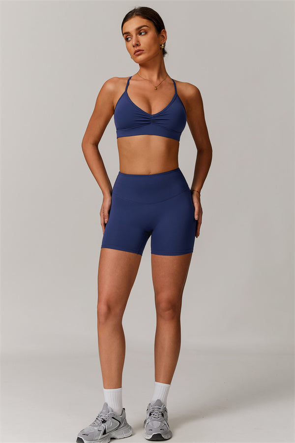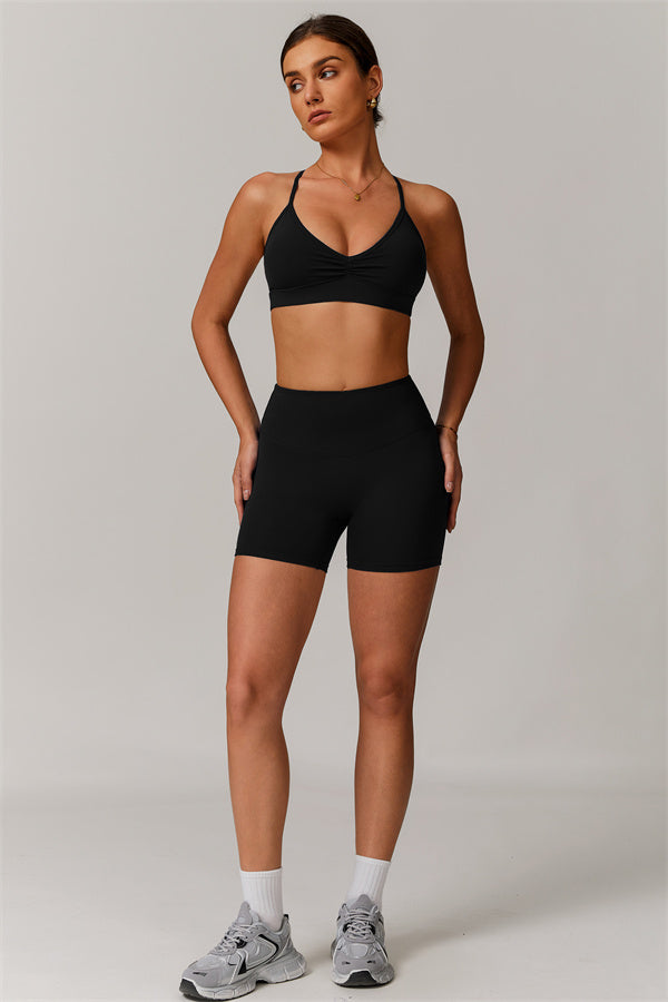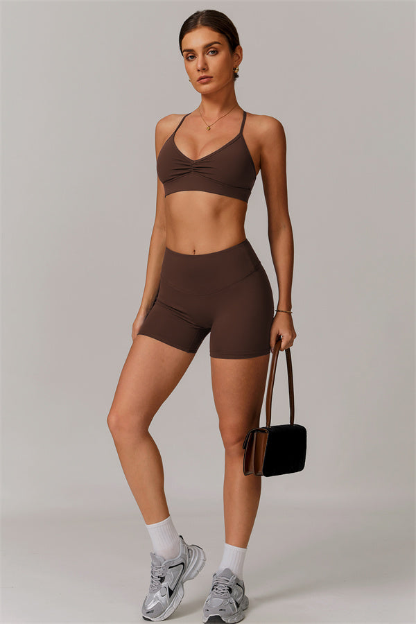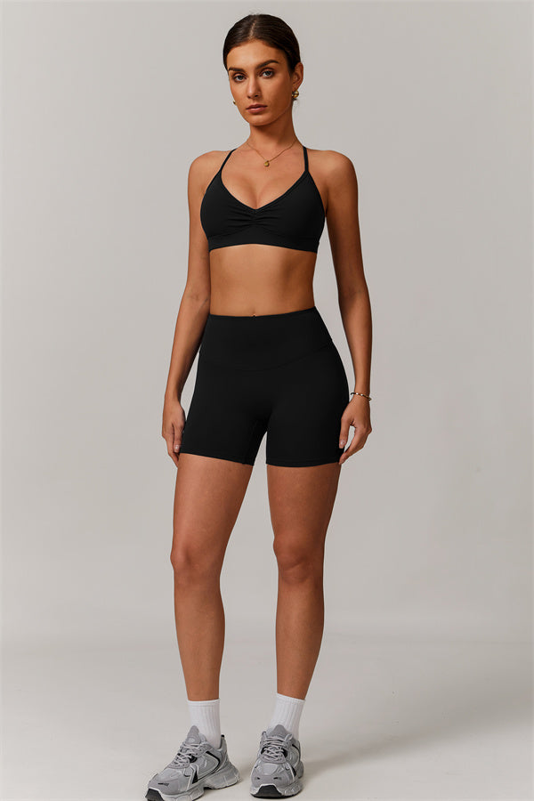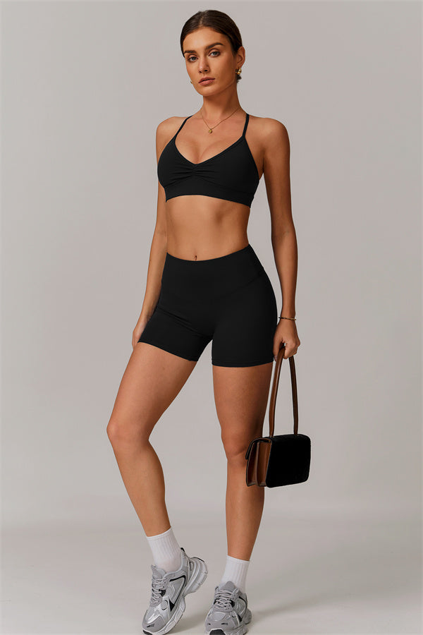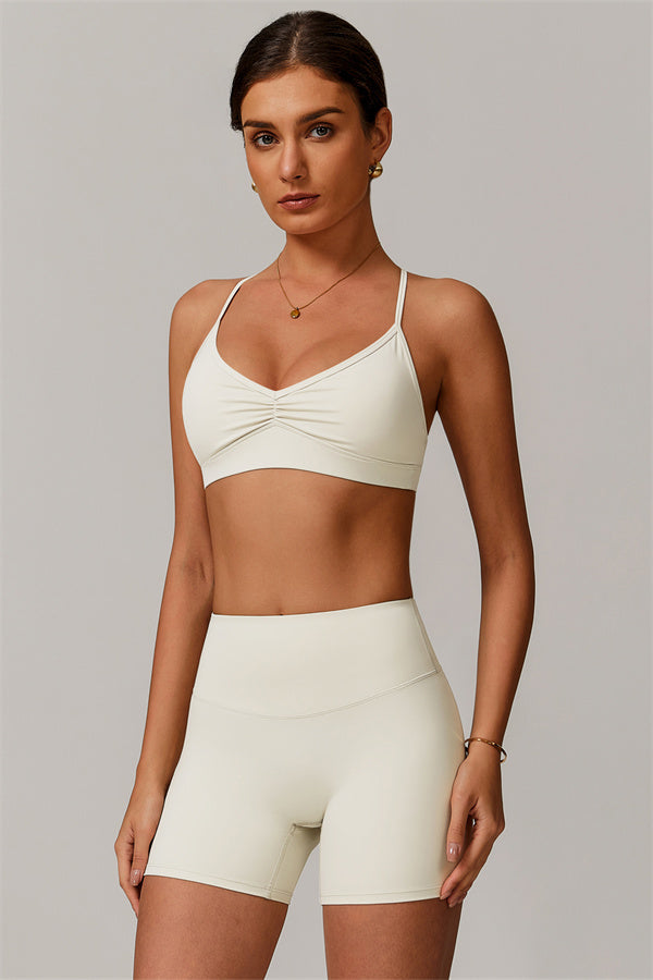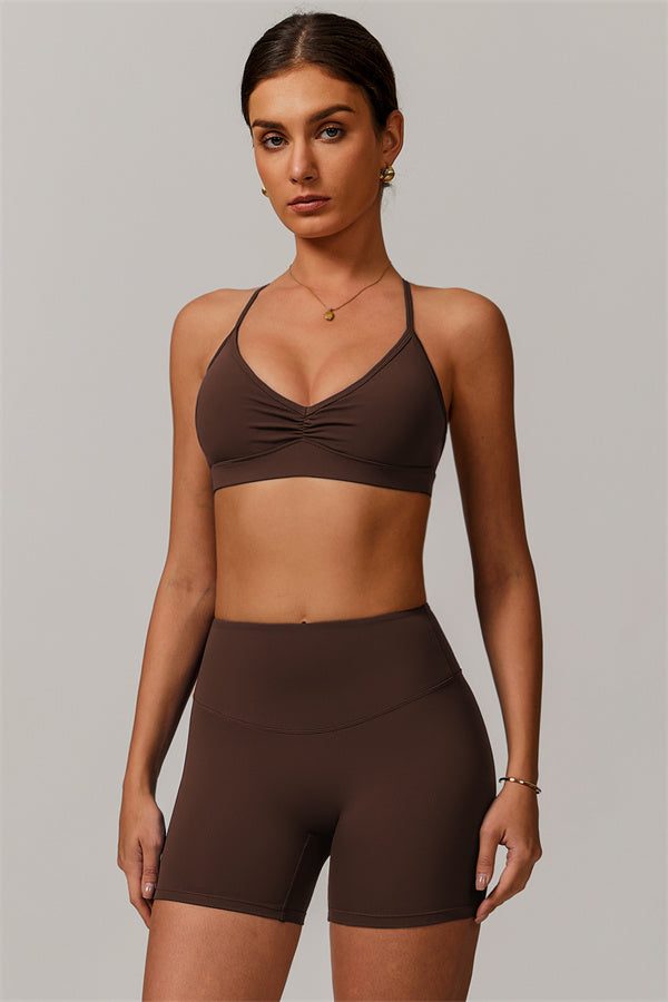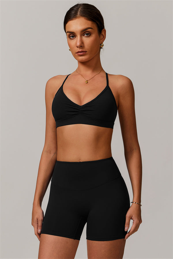 Front Pleat Detailing – The front pleats create a unique, sensual design that adds a touch of elegance and sophistication, making this sports bra both fashionable and functional.