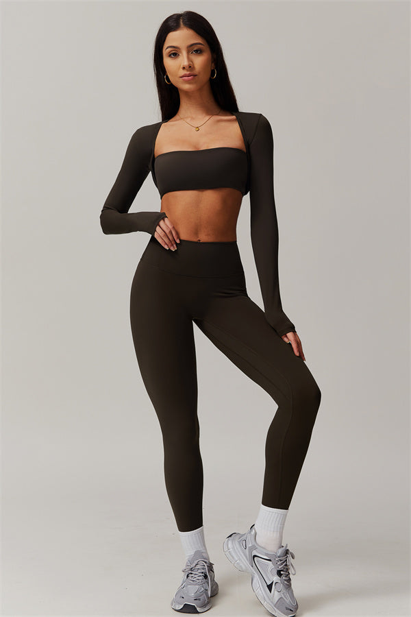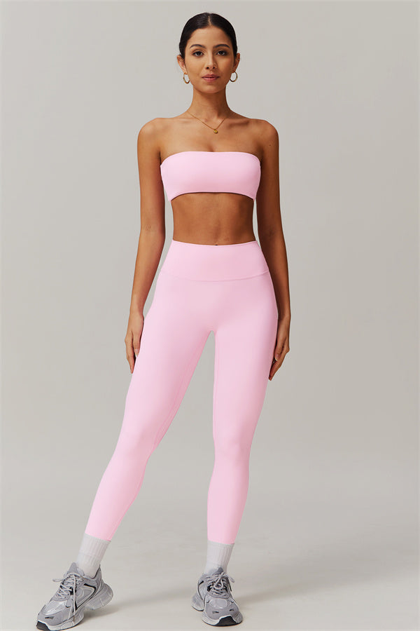 Achieve the perfect blend of style, comfort, and performance with this matching set, featuring a sports bra and leggings designed to support you through any activity.