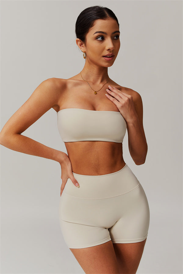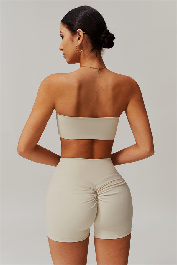 Stay stylish and supported with this matching set, featuring a strapless sports bra and sleek shorts that deliver on both form and function.