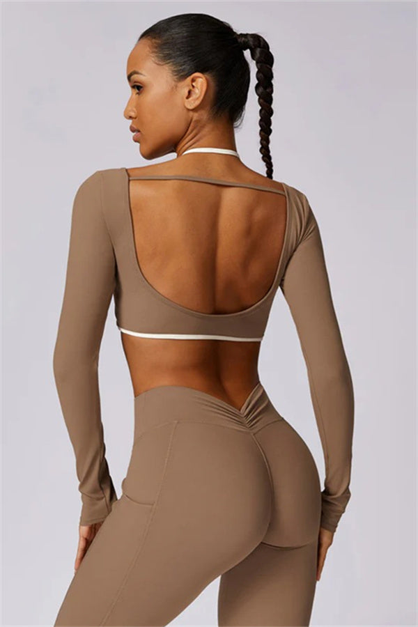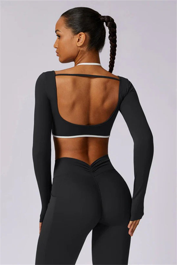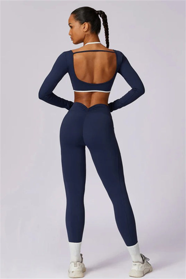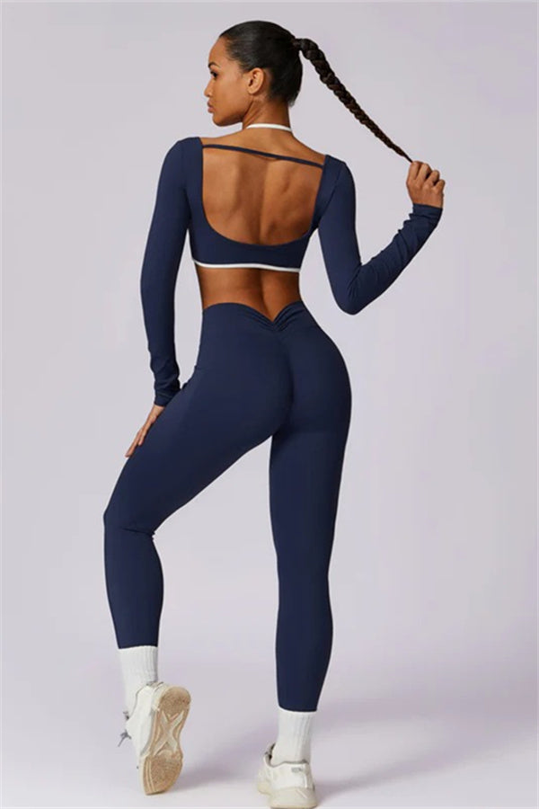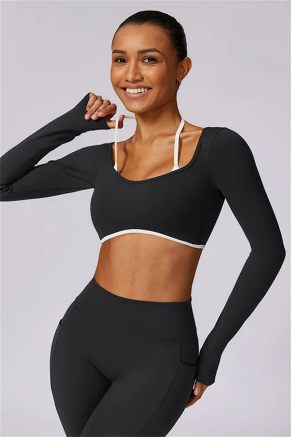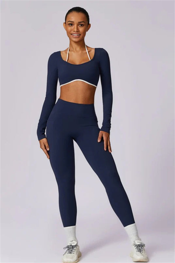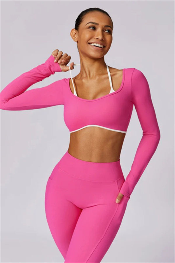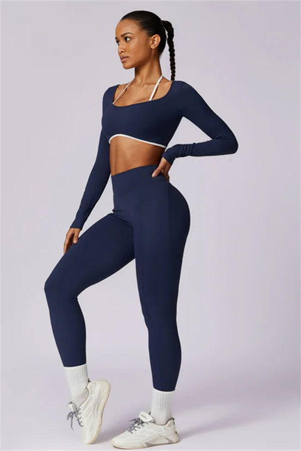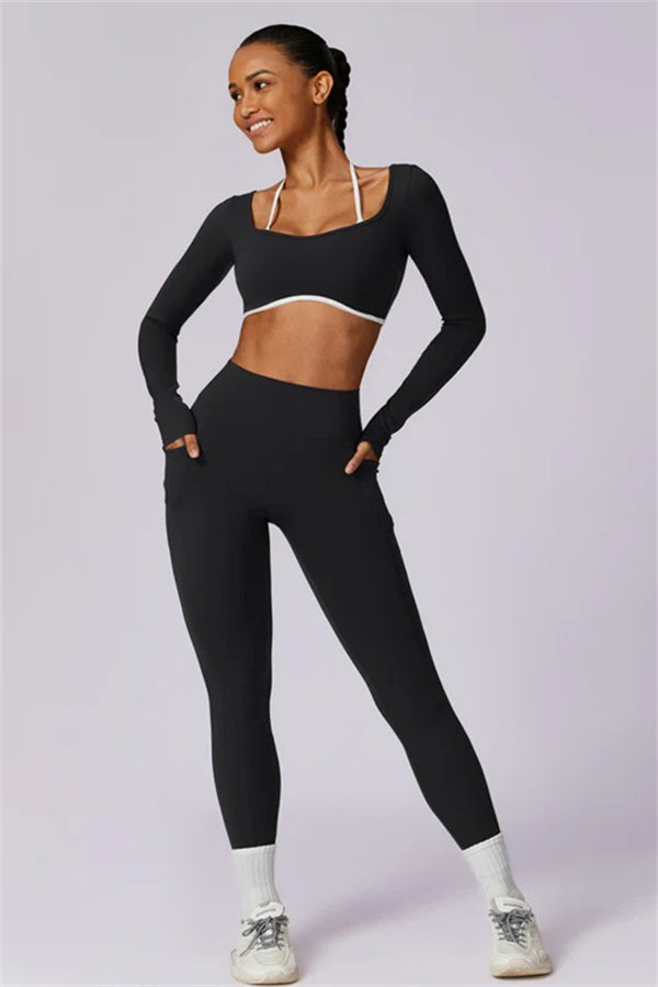 This color-blocked crop top and leggings set combines style, support, and comfort, making it a versatile addition to your activewear collection. Perfect for any workout or casual outing!