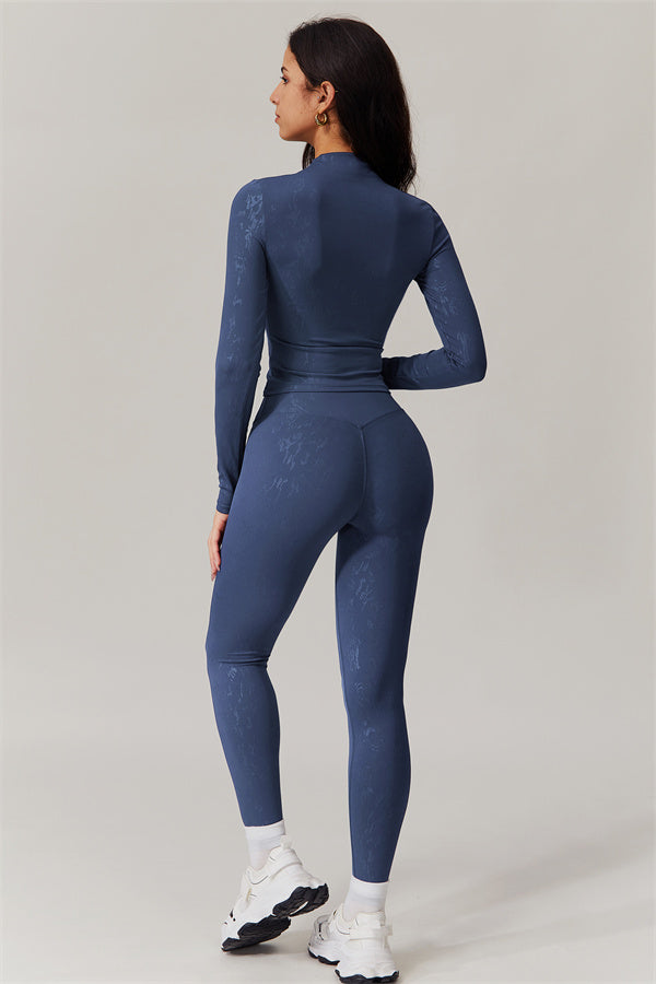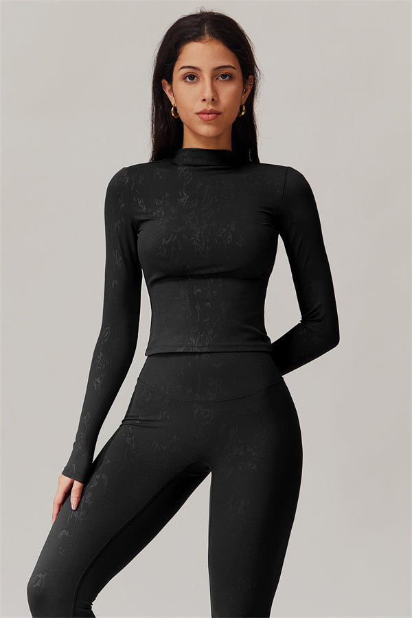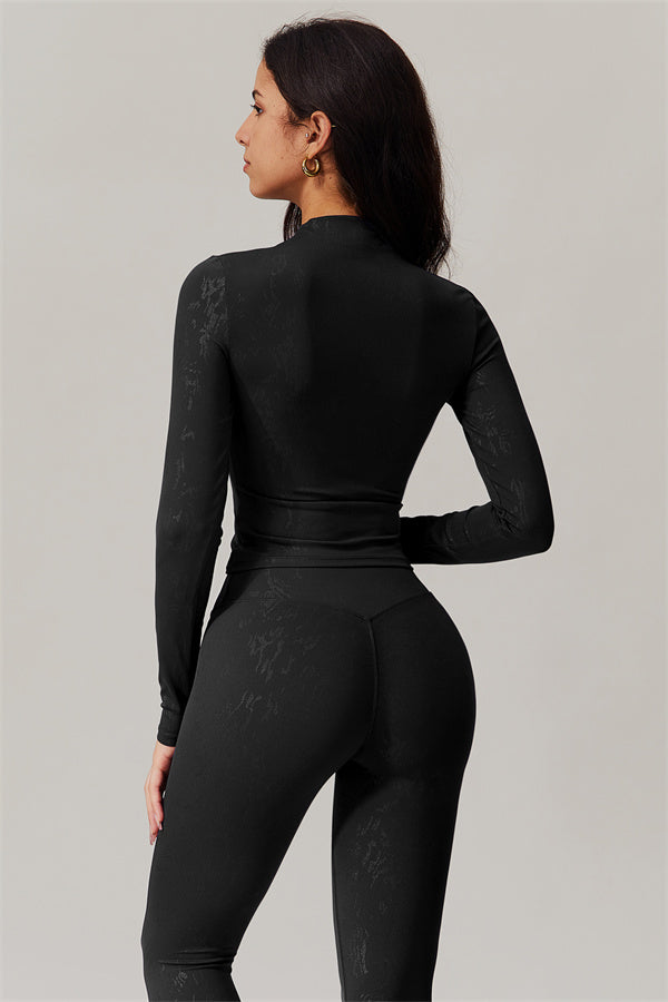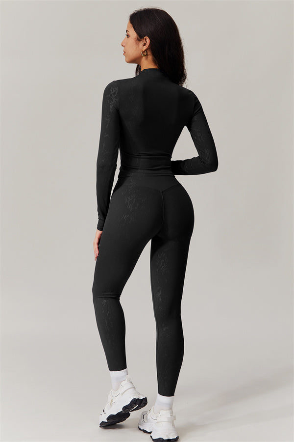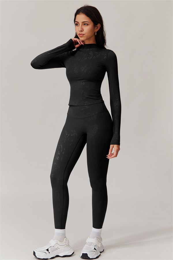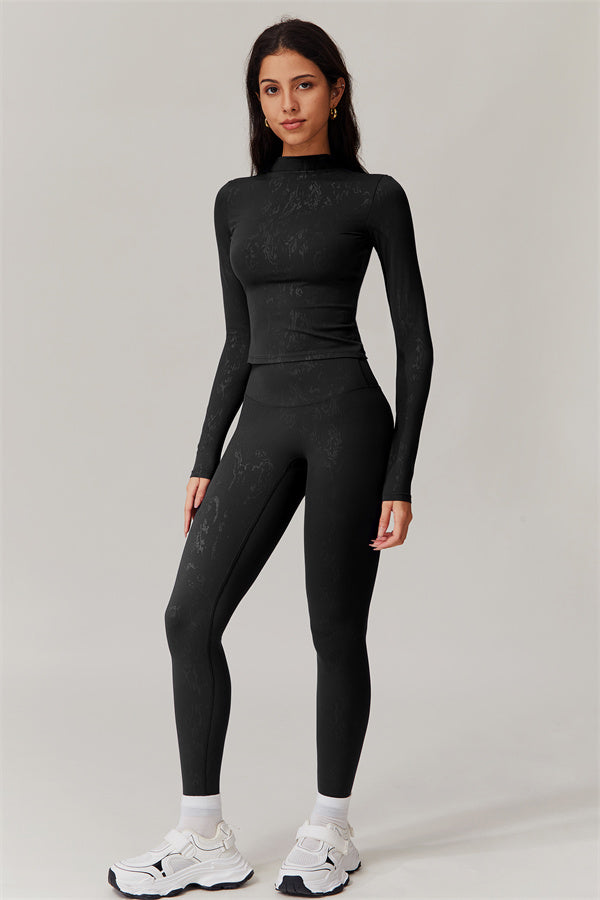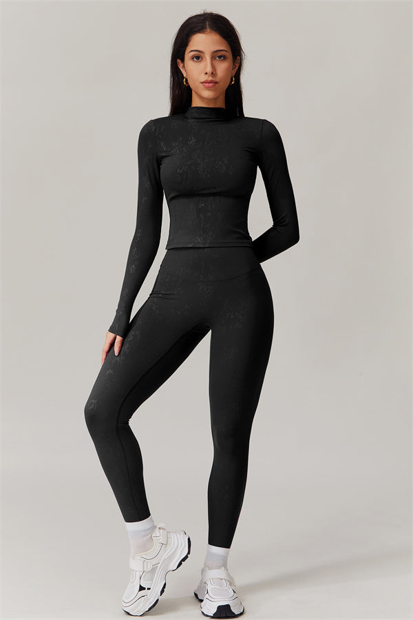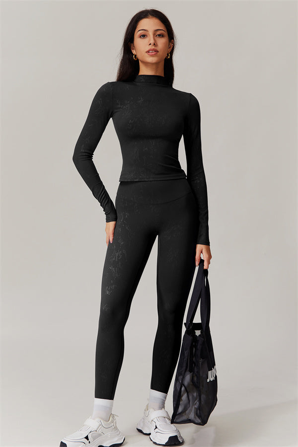 Elevate your workout wardrobe with this sleek and supportive matching set. Designed for both style and function, this long sleeve T-shirt and leggings combo provides a flattering fit, comfort, and confidence for any activity.