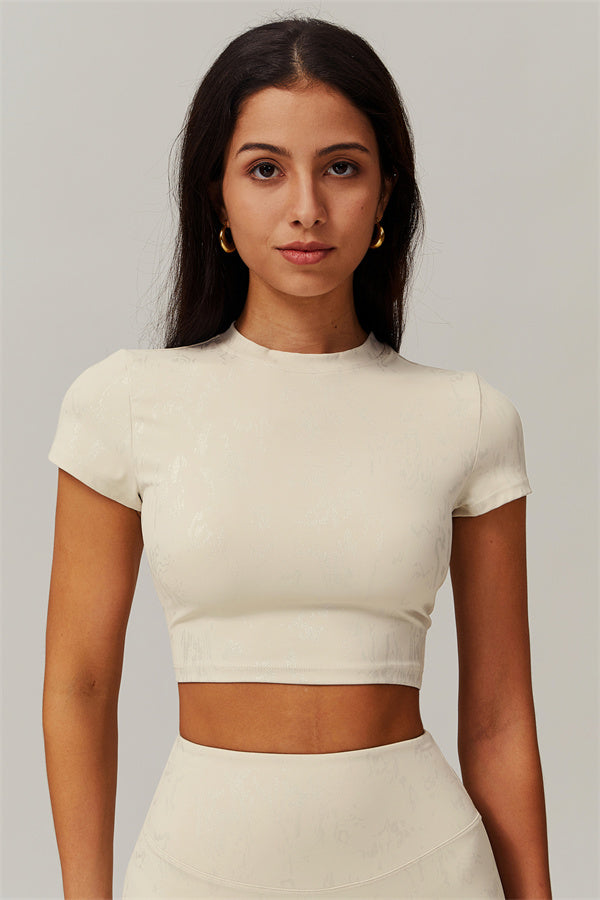 With a classic round neckline, this T-shirt flatters the neck and adds an elegant touch to any workout or athleisure ensemble. Made from a soft, stretchy fabric blend of 78% recycled nylon and 22% spandex, it offers a comfortable fit that's perfect for high-energy activities or relaxed moments. Breathable and durable, this tee is designed to keep you comfortable and stylish wherever you go.