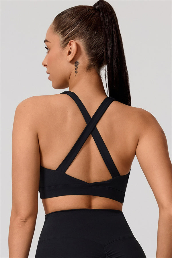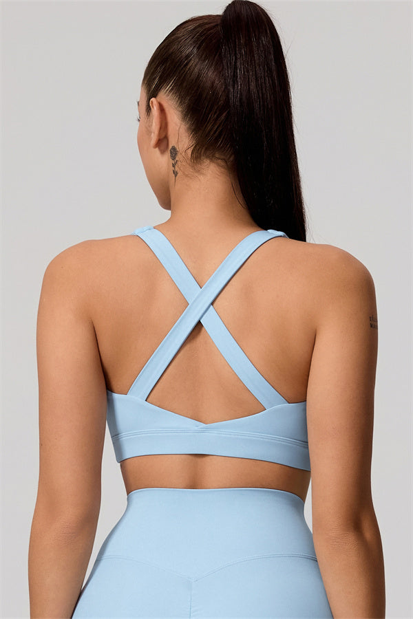 Dual shoulder straps with cross-back design reveal a beautiful butterfly bone