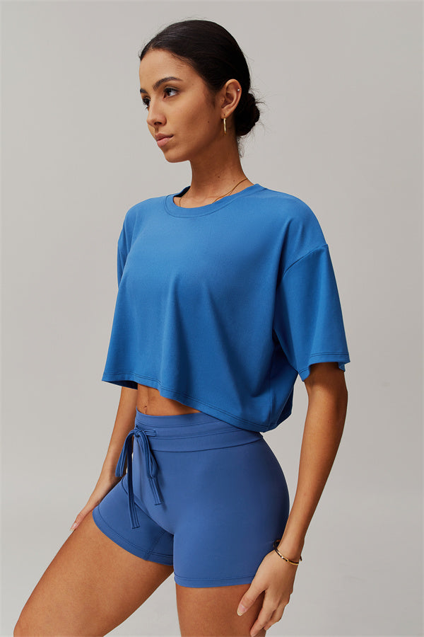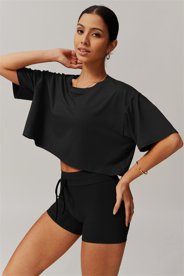 - Cropped, Relaxed Fit: Designed with a loose, cropped silhouette and a curved hemline that flatters your waist.