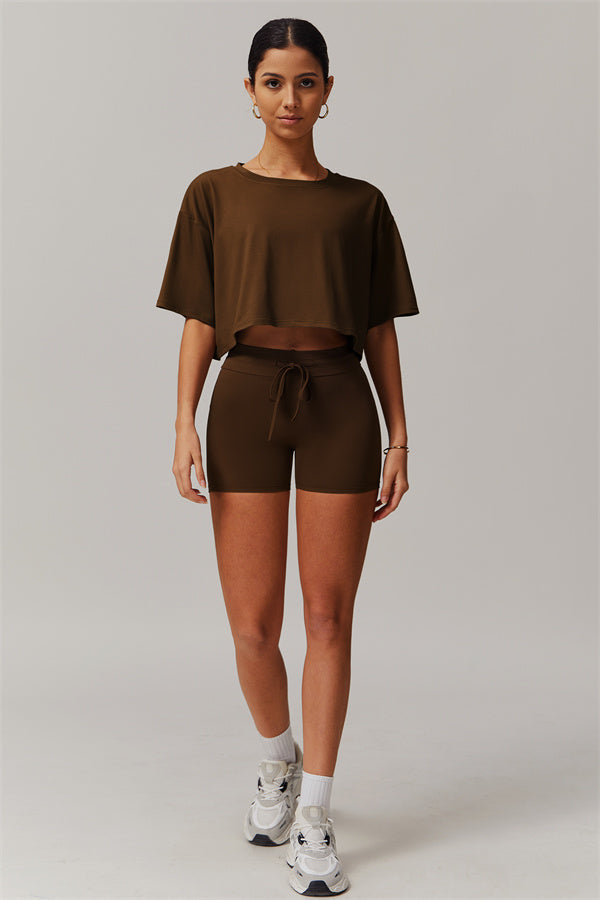 The Resonate T-Shirt and Shorts set is designed to offer effortless comfort and style, whether you're working out, running errands, or lounging at home. Featuring a breathable cropped tee and curve-enhancing shorts, this set delivers both performance and a flattering silhouette.