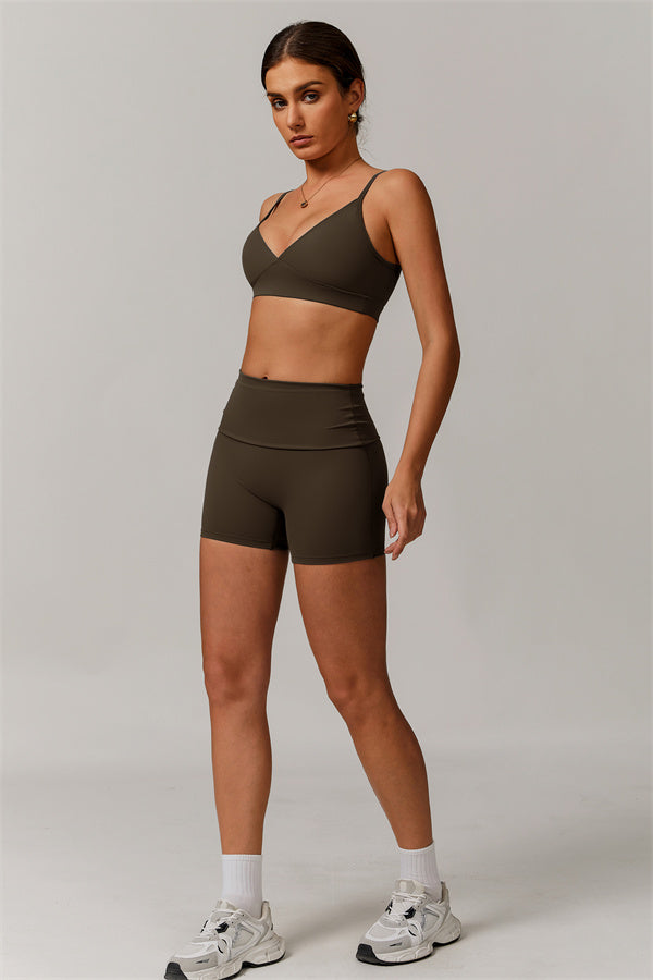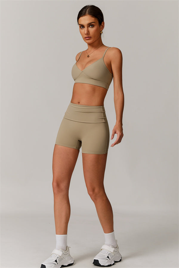 - Foldover Waistband – Smooths the waist and effortlessly conceals the midsection.