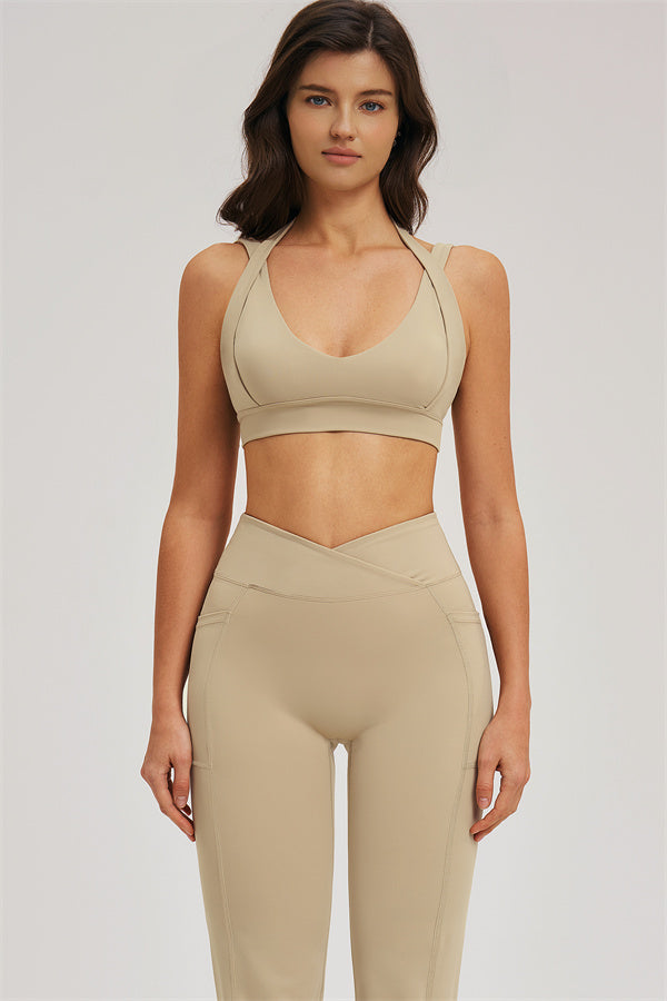 Halter-style straps evenly distribute shoulder pressure for all-day comfort