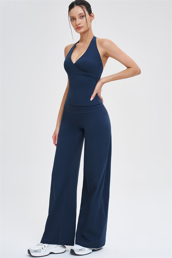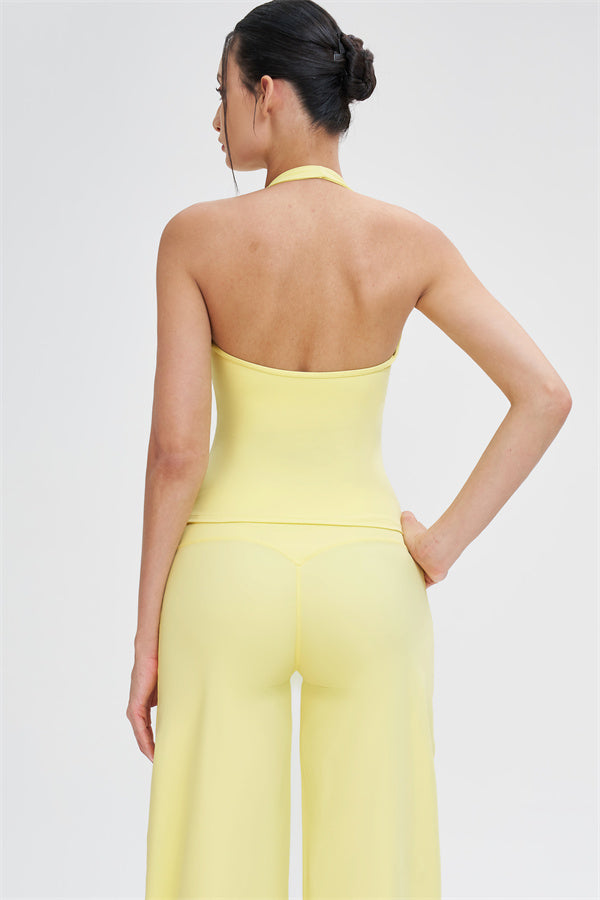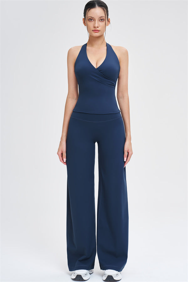 Crop Top: Cross-over V-neck halter design that flatters the shoulders and elongates the neck