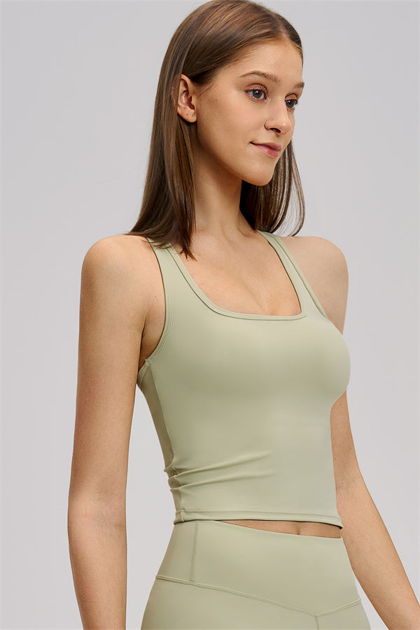 • Square neckline to highlight the collarbone and enhance upper-body lines