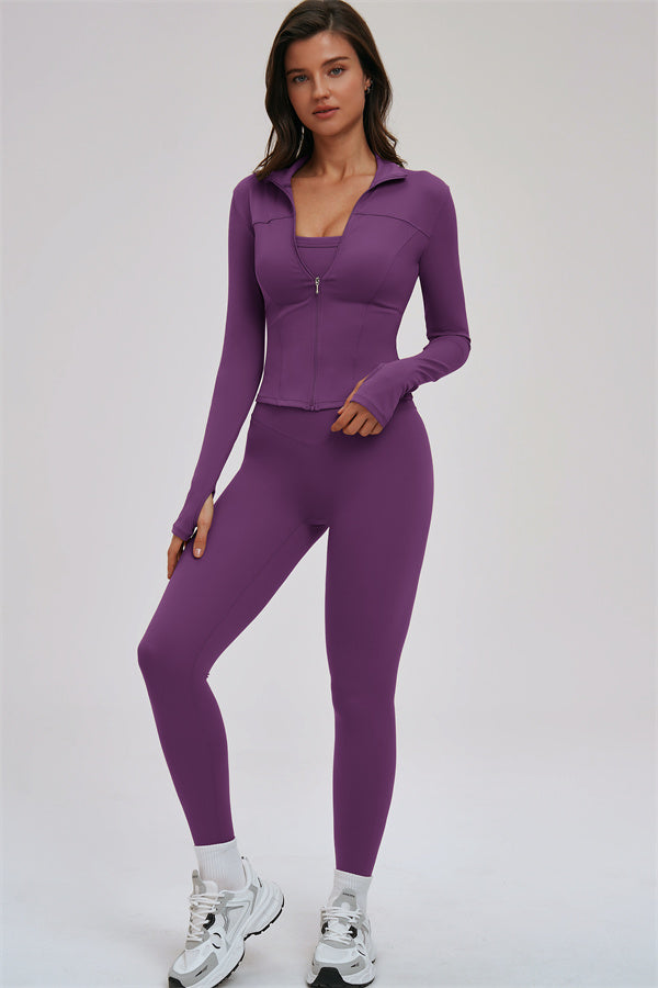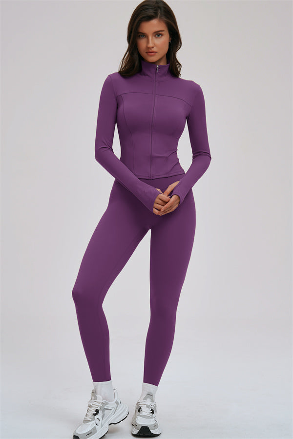 The Kinetic Zip Jacket & Leggings 2-Piece Set – a sleek and supportive matching set designed for performance and style.