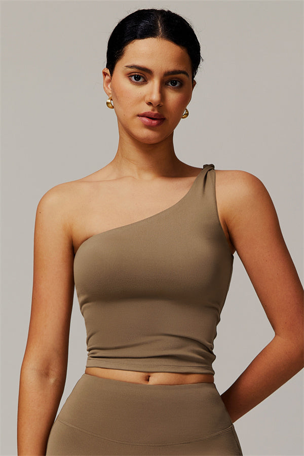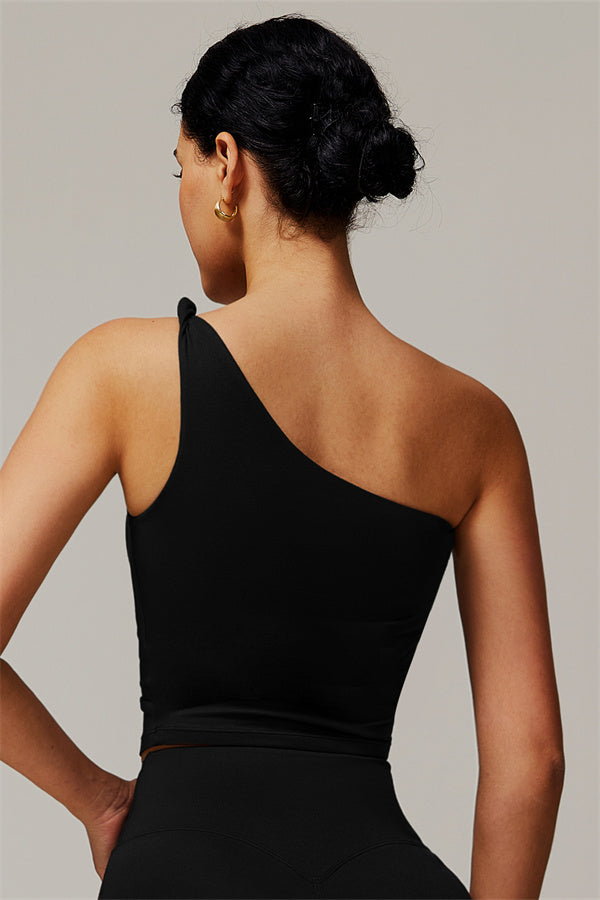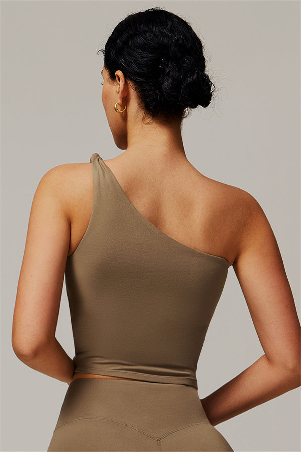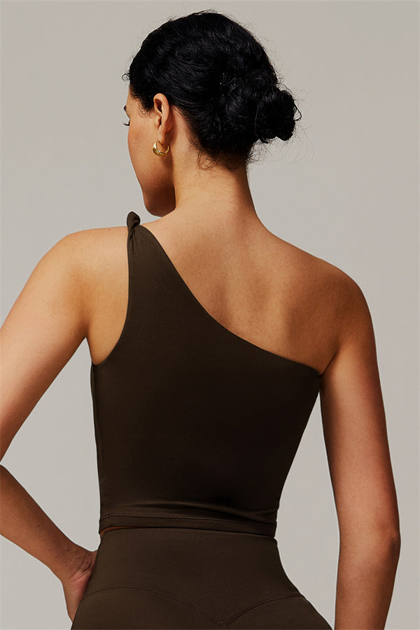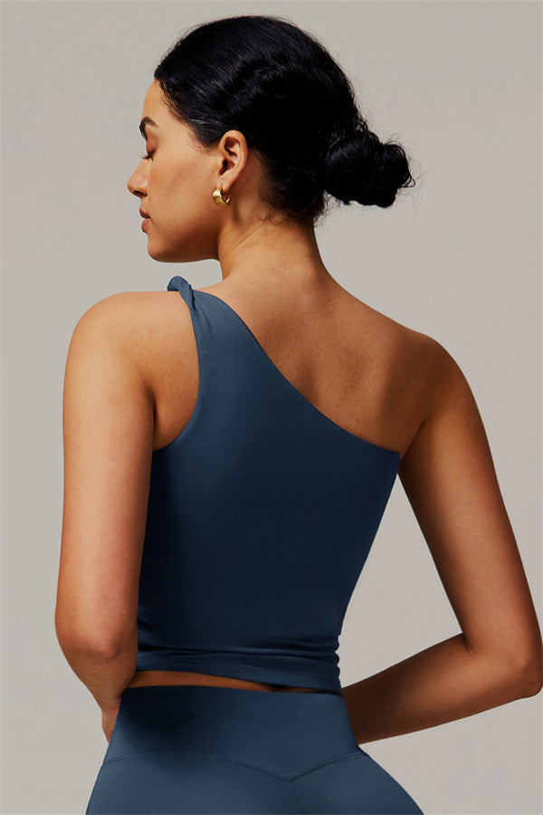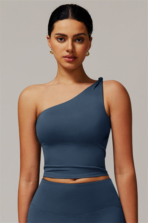 Elevate your athleisure style with The Luxe One-Shoulder Crop Top, a statement piece that seamlessly blends elegance and functionality. Designed with a striking asymmetrical silhouette, this top features a chic twisted one-shoulder detail that enhances your neckline while providing a secure and comfortable fit. Whether you're hitting the gym, heading out for a casual day, or styling it for an evening look, this top delivers confidence and versatility in one sleek design.