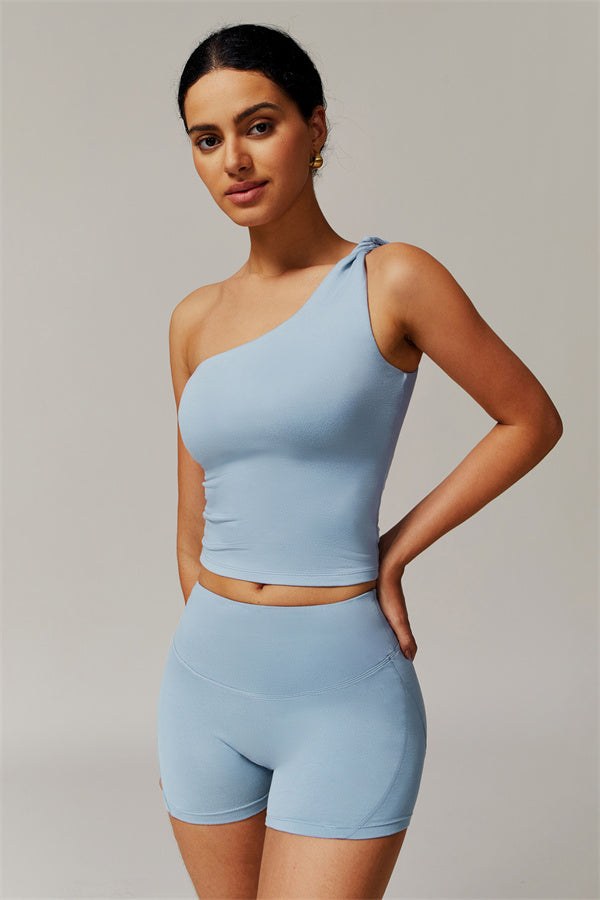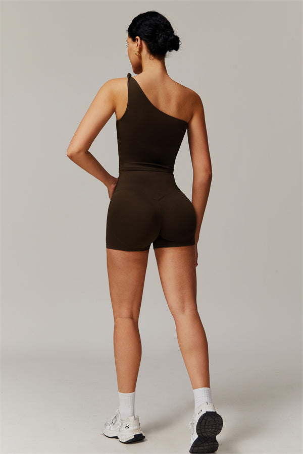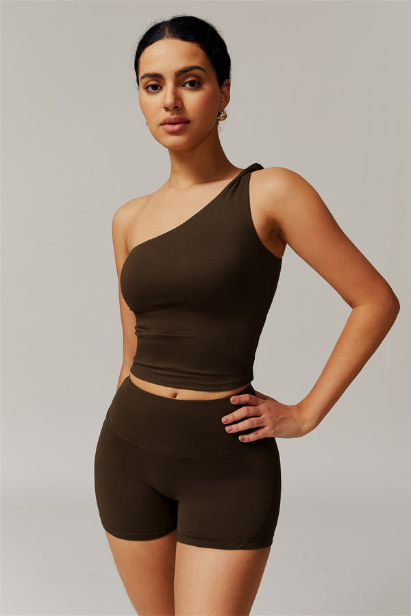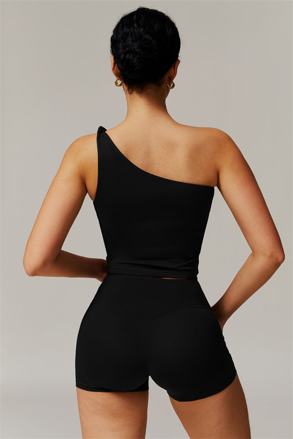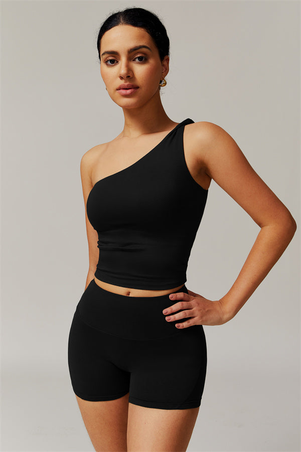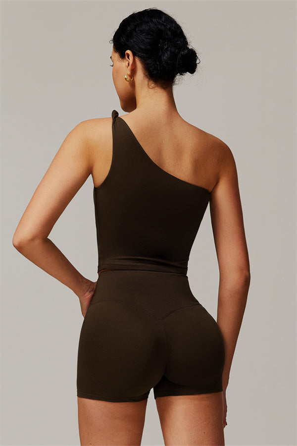 Elevate your athleisure style with The Luxe One-Shoulder Crop Top, a statement piece that seamlessly blends elegance and functionality. Designed with a striking asymmetrical silhouette, this top features a chic twisted one-shoulder detail that enhances your neckline while providing a secure and comfortable fit. Whether you're hitting the gym, heading out for a casual day, or styling it for an evening look, this top delivers confidence and versatility in one sleek design.