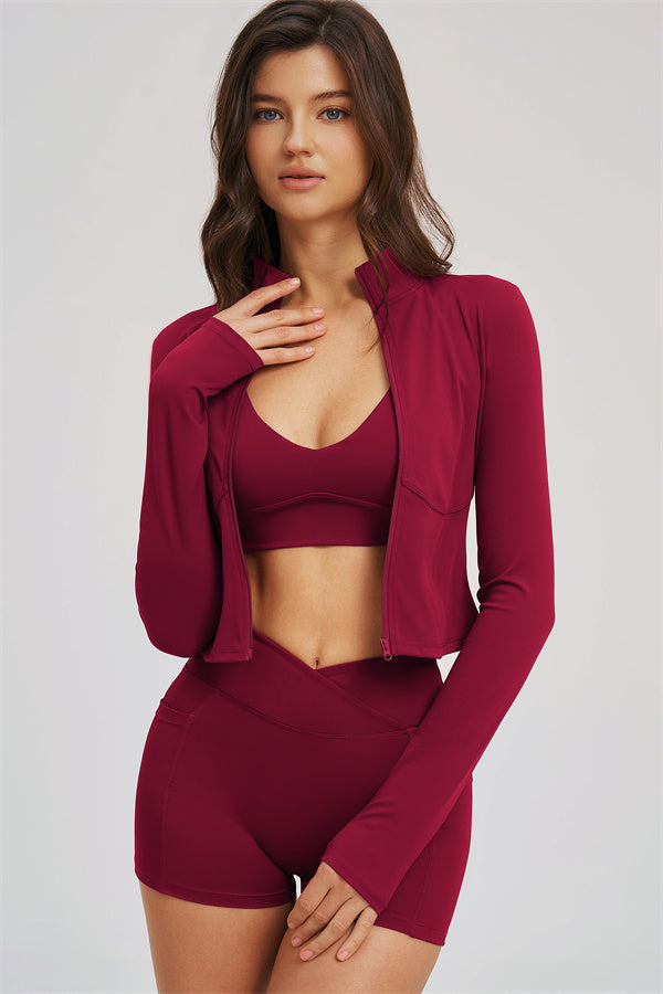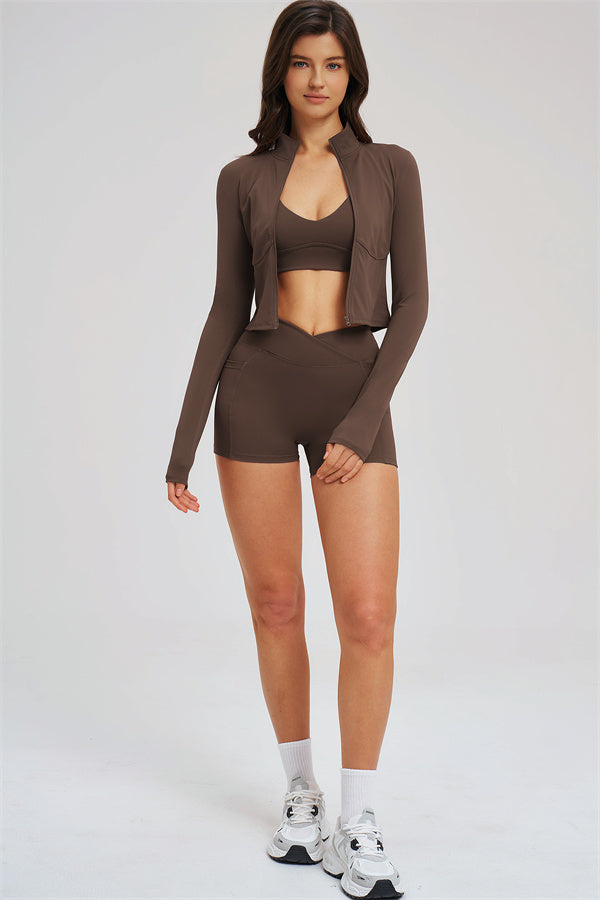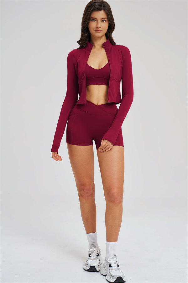 The Sizzle Zip Jacket Sports Bra Shorts 3-Piece Set