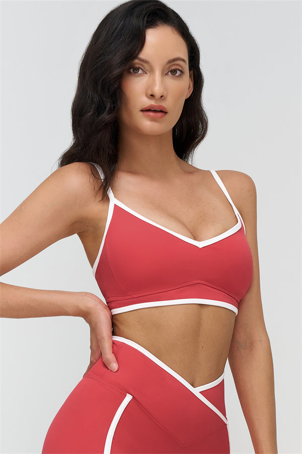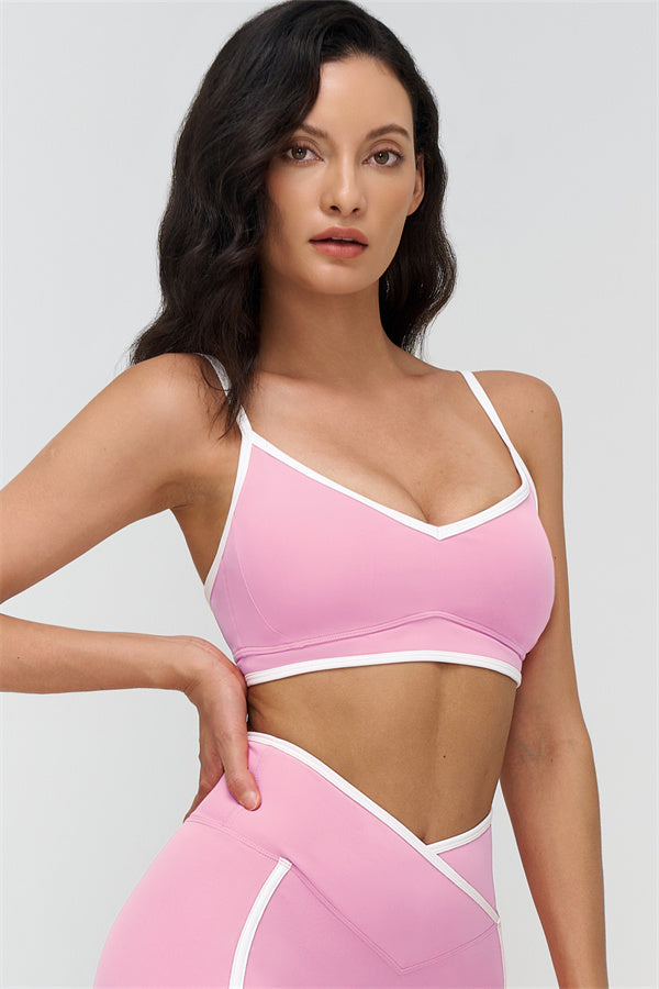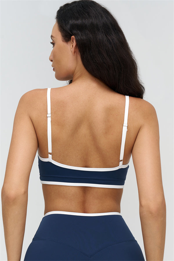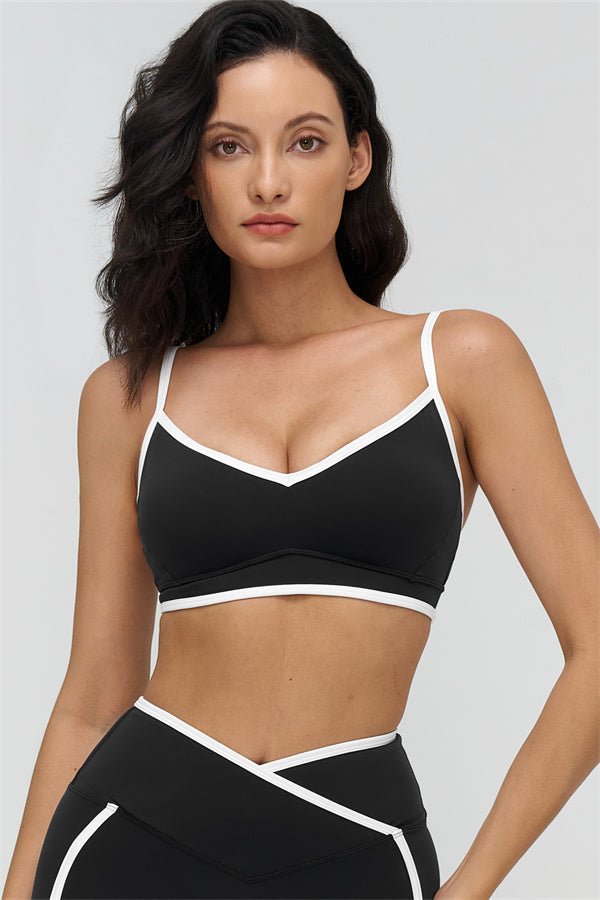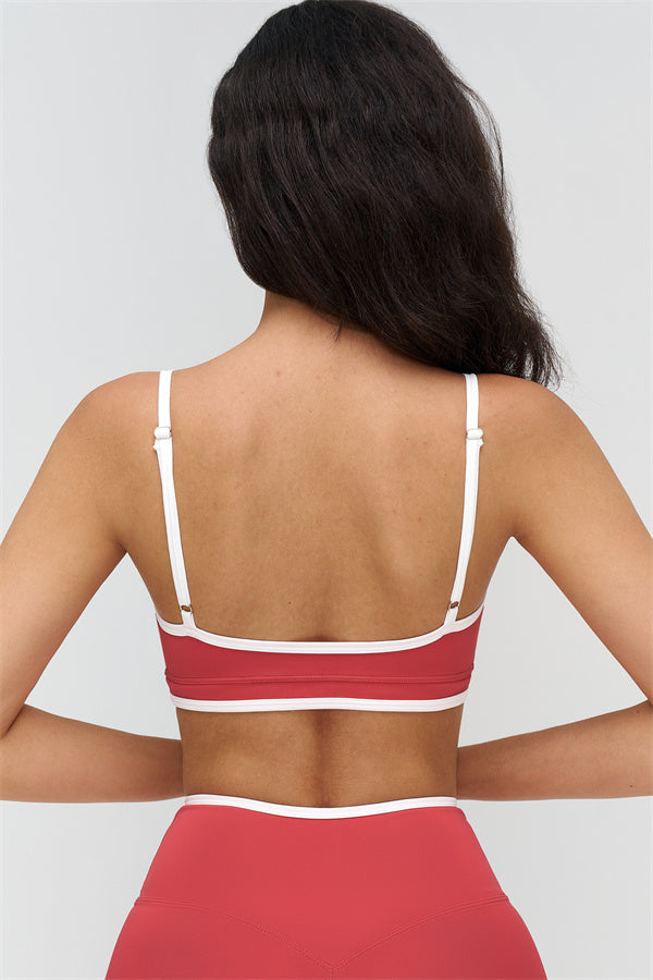 Step up your activewear game with The Crave Contrast Sports Bra, combining support, style, and comfort. Its sleek double-shoulder straps and contrast trim create a chic, sculpted look, while the removable padding makes it versatile for both workouts and everyday wear.