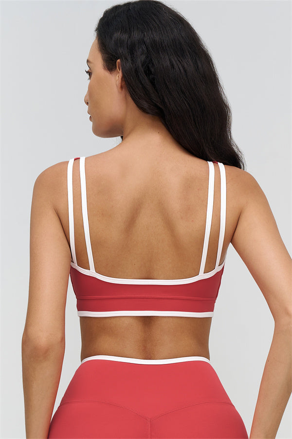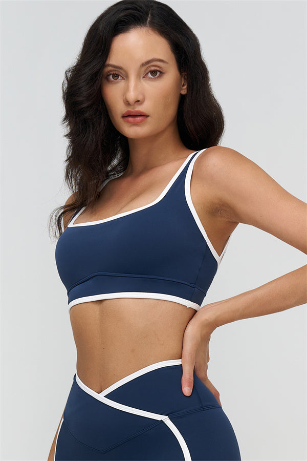 Elevate your workout wardrobe with The Crave Sports Bra, designed to highlight your curves while providing comfort and support. The wide neckline showcases your collarbones, and the removable padding allows for versatile wear from gym to street.
