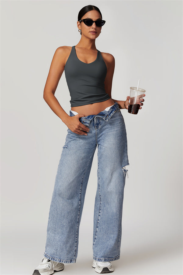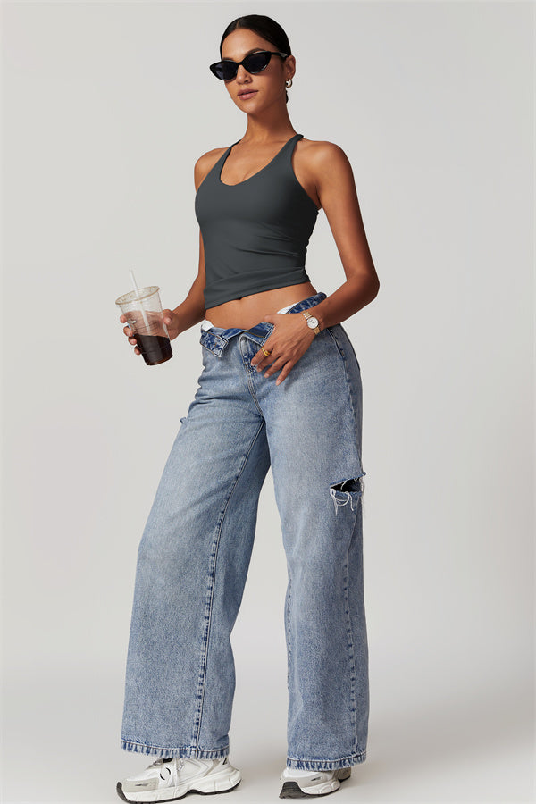 This stylish cross back vest combines functionality with a flattering design, ideal for both workouts and casual outings. Featuring a U-shaped neckline, it visually elongates the neck for a sleek, elegant look, while the cross-back design adds a chic twist and enhances breathability. Adjustable straps ensure a customized fit, so you can move with confidence and comfort throughout any activity.