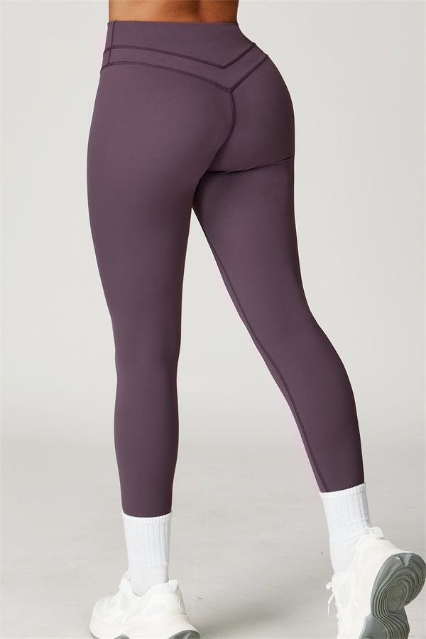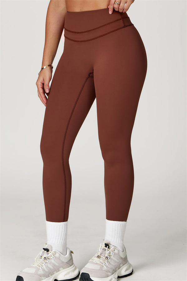 These high-waisted leggings are crafted to provide exceptional fit and flattering support, ideal for intense workouts or casual wear. The no-roll waistband is reinforced with double-stitching to maintain its shape and keep you covered and confident, even through dynamic movements. With contouring seams designed to enhance and lift, these leggings give your figure a structured, dimensional look, highlighting a full, rounded shape.