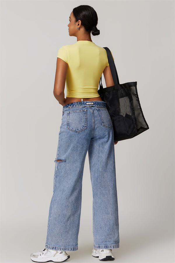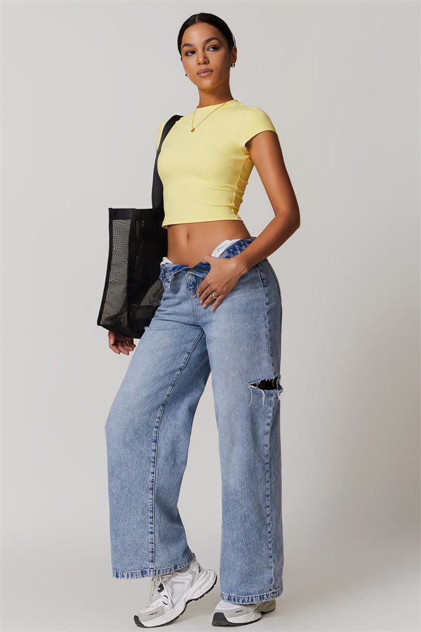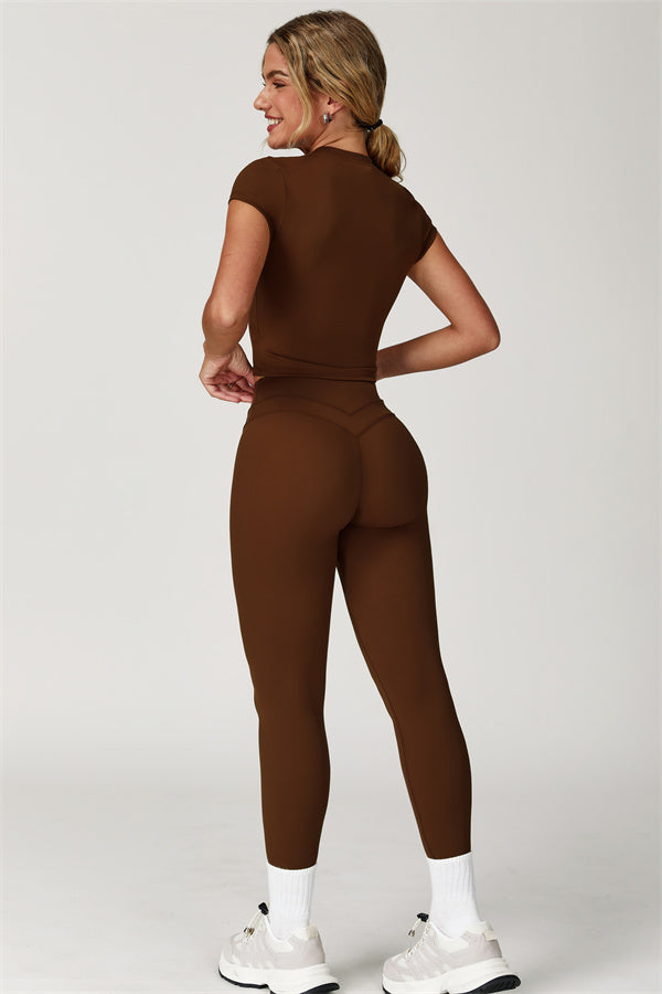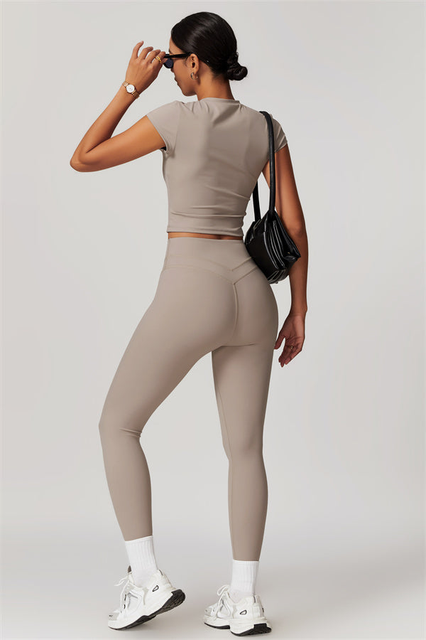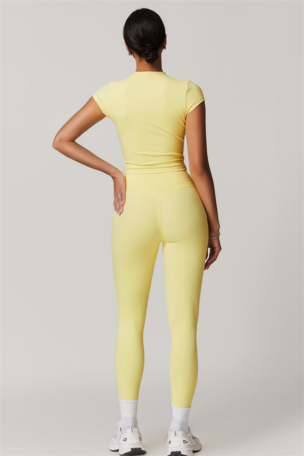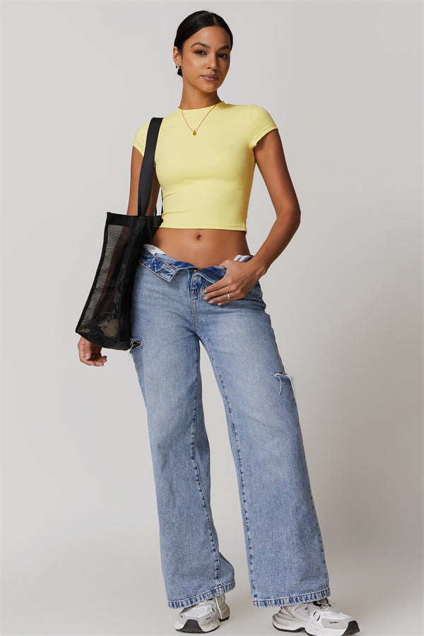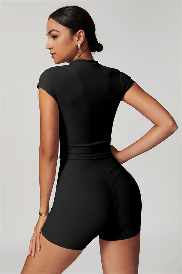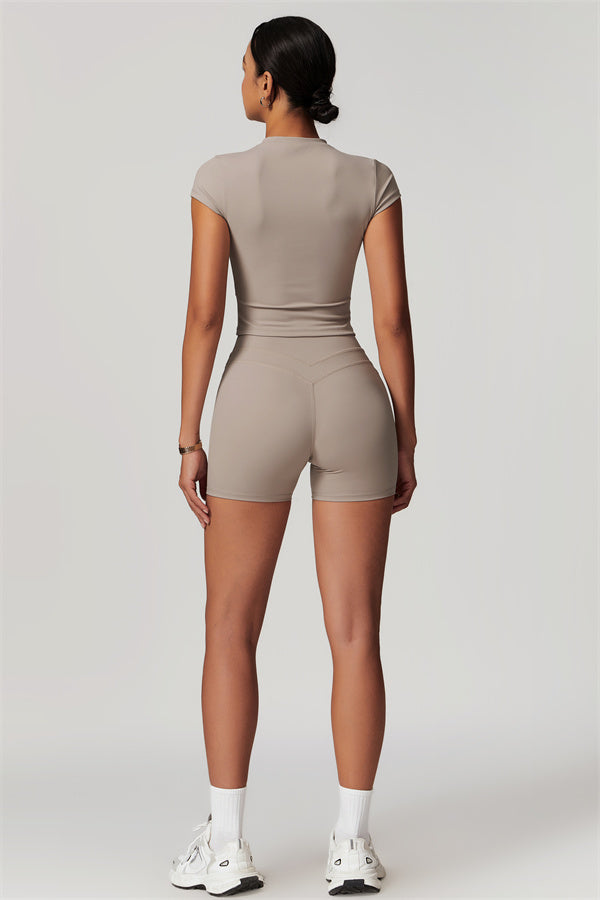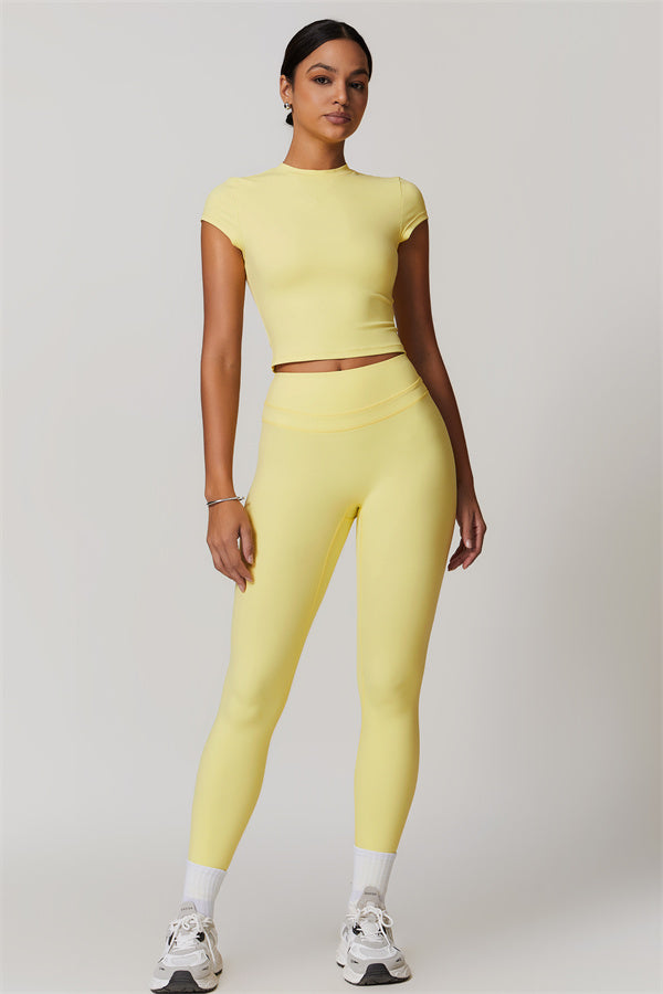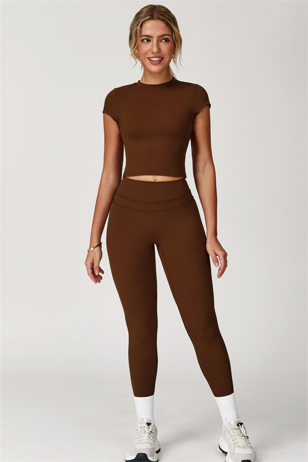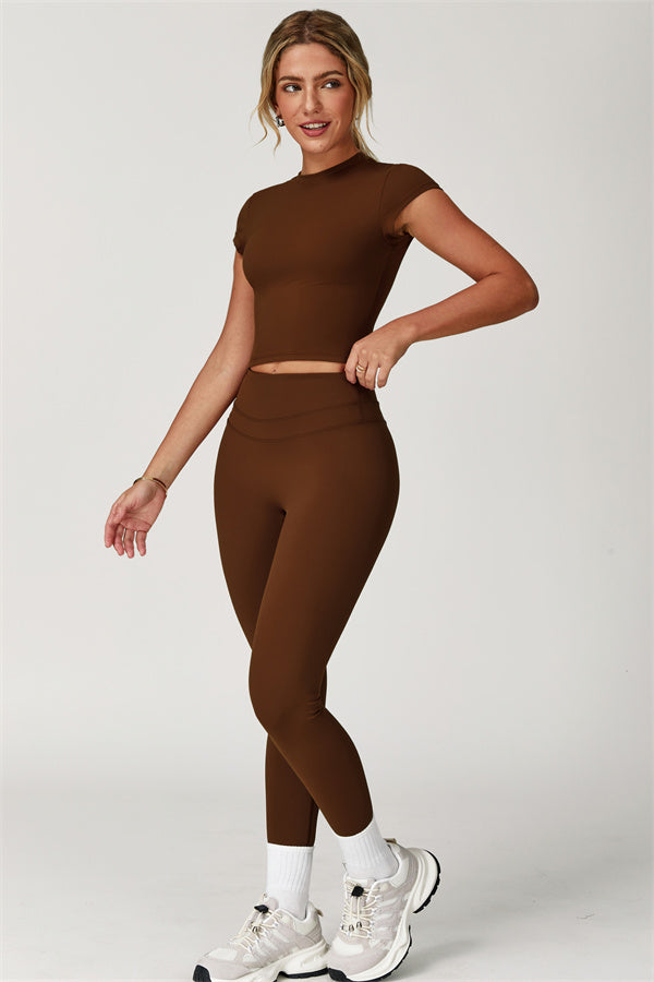 This classic T-shirt blends style with function, making it a versatile choice for activewear or casual outings. Featuring a timeless round neckline, it subtly enhances the neck line, while the charming cap sleeves create a flattering silhouette that emphasizes the shoulders. With a waist-hugging fit, this tee provides a slimming effect and comfortably conceals the midsection for a smooth, streamlined look.