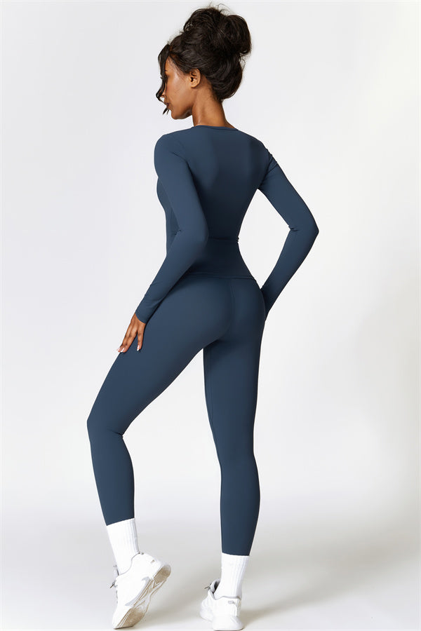 Elevate your activewear collection with this sleek and flattering crop top. Featuring a delicate round neckline, it enhances your necklines while offering a clean, minimalist look. The fitted silhouette highlights your waistline, while the extended hem ensures a comfortable, snug fit that stays in place during every move.