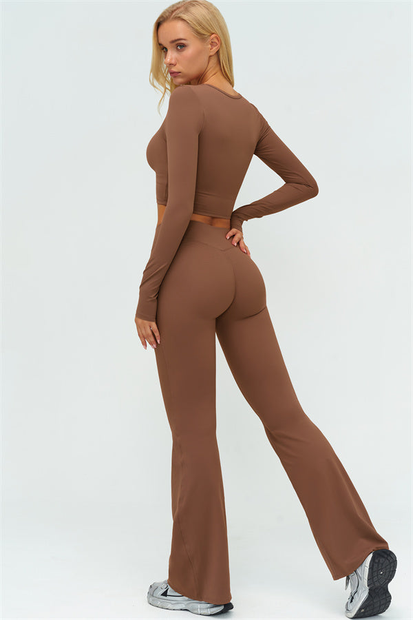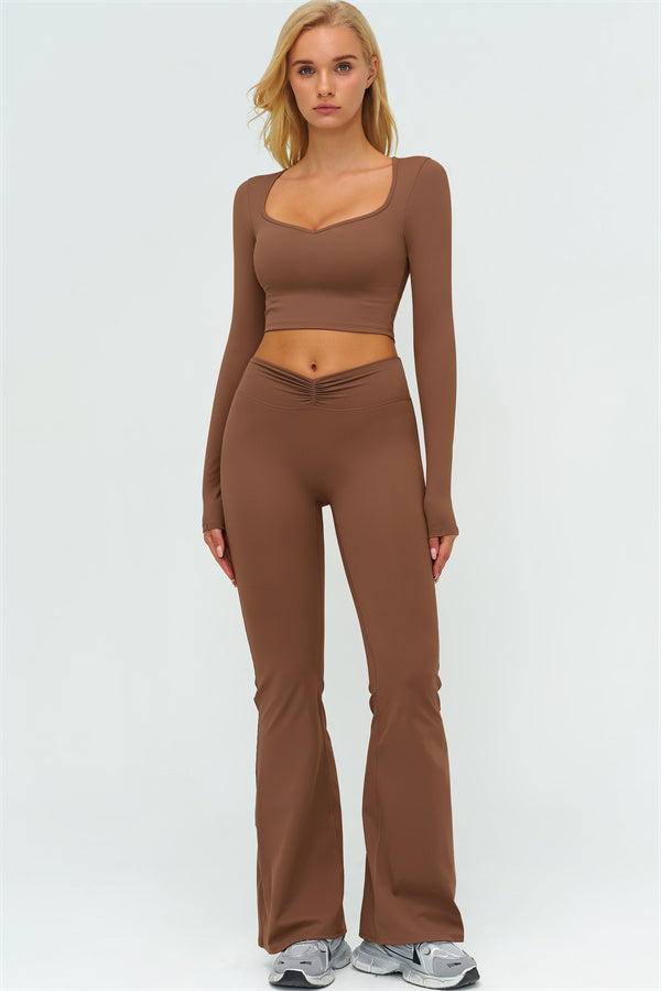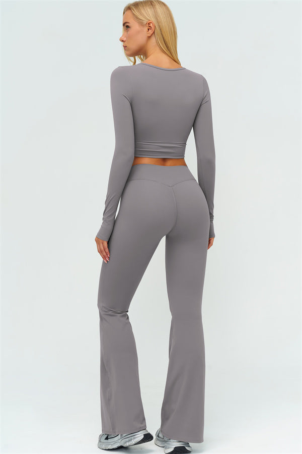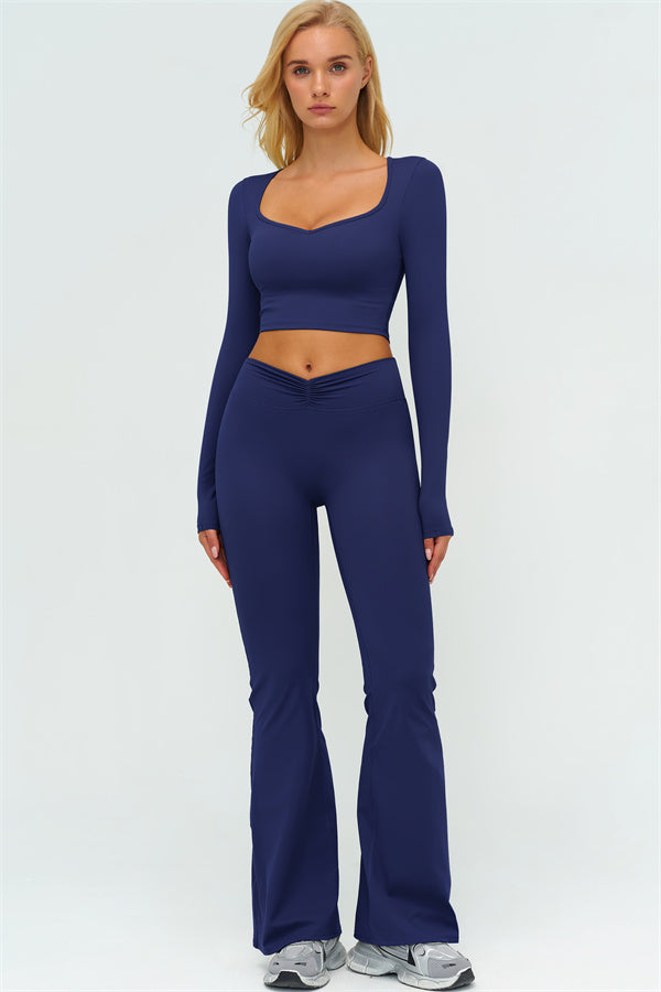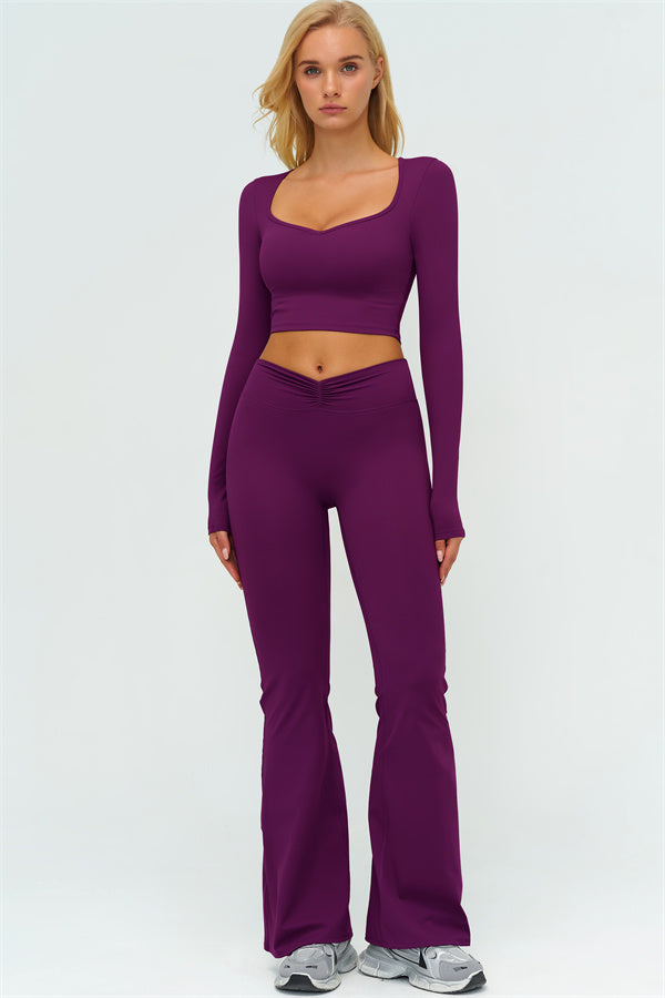 The Lushness Long Sleeve Crop Top Flared Leggings 2-Piece Set