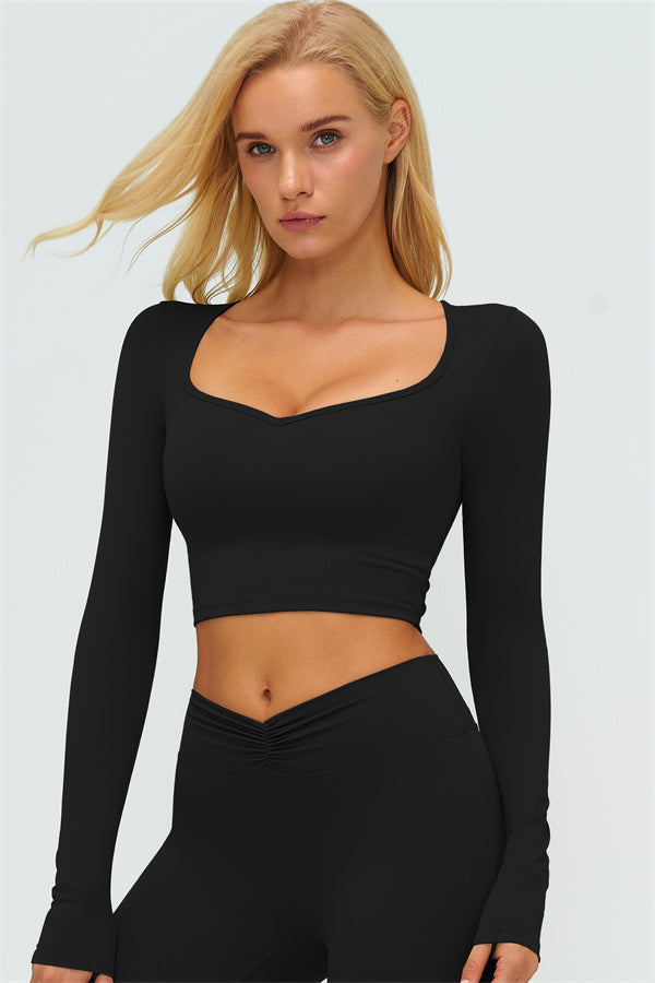 Micro V-neck cut-out highlights the collarbone and elongates the neck