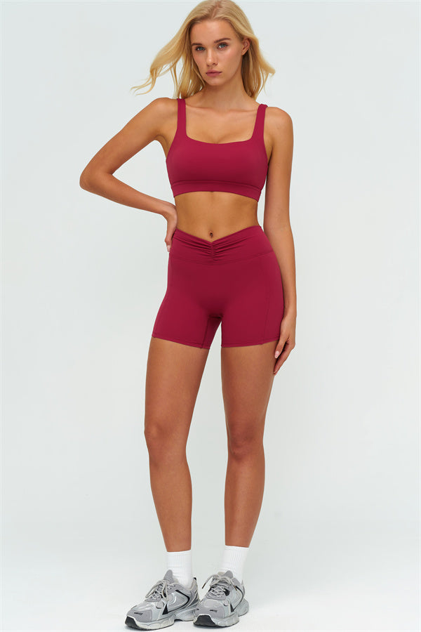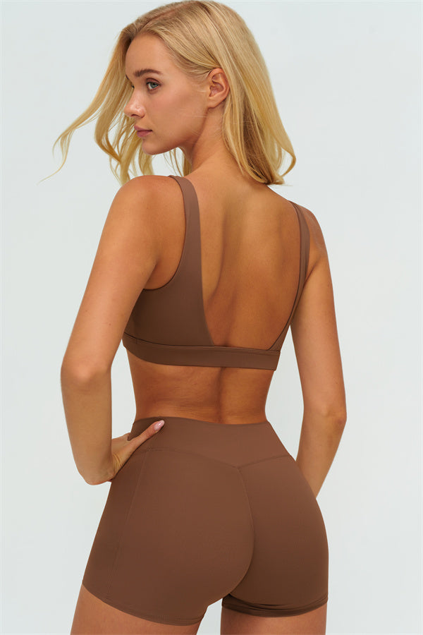 Designed to sculpt, support, and elevate your natural lines, The Lushness V-Back Sports Bra blends style and performance in perfect balance. Its structured neckline and geometric open-back design create a refined, feminine silhouette, ideal for training or casual wear.