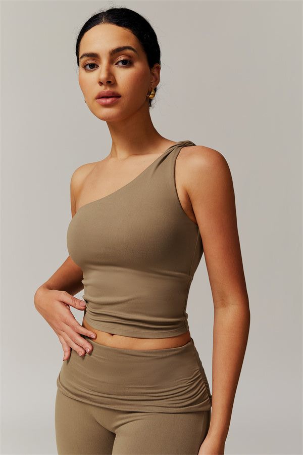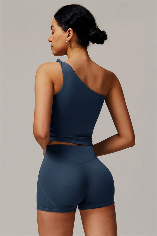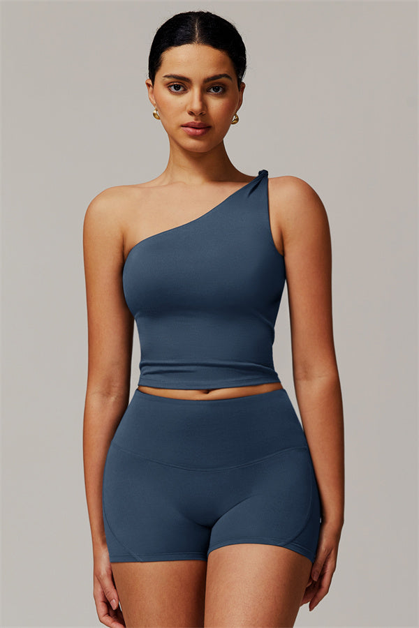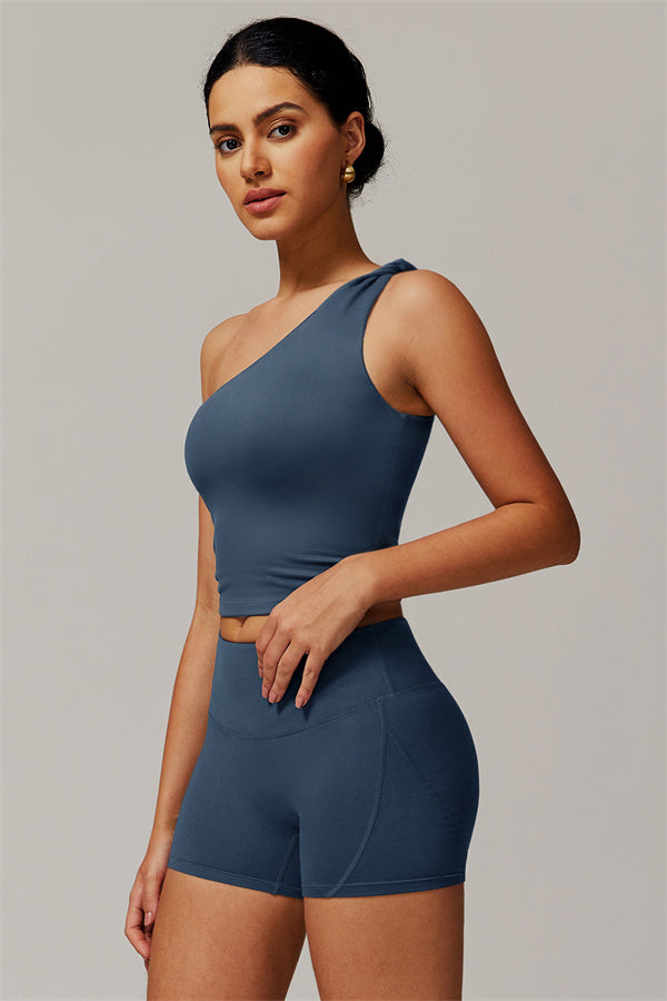 Elevate your athleisure style with The Luxe One-Shoulder Crop Top, a statement piece that seamlessly blends elegance and functionality. Designed with a striking asymmetrical silhouette, this top features a chic twisted one-shoulder detail that enhances your neckline while providing a secure and comfortable fit. Whether you're hitting the gym, heading out for a casual day, or styling it for an evening look, this top delivers confidence and versatility in one sleek design.