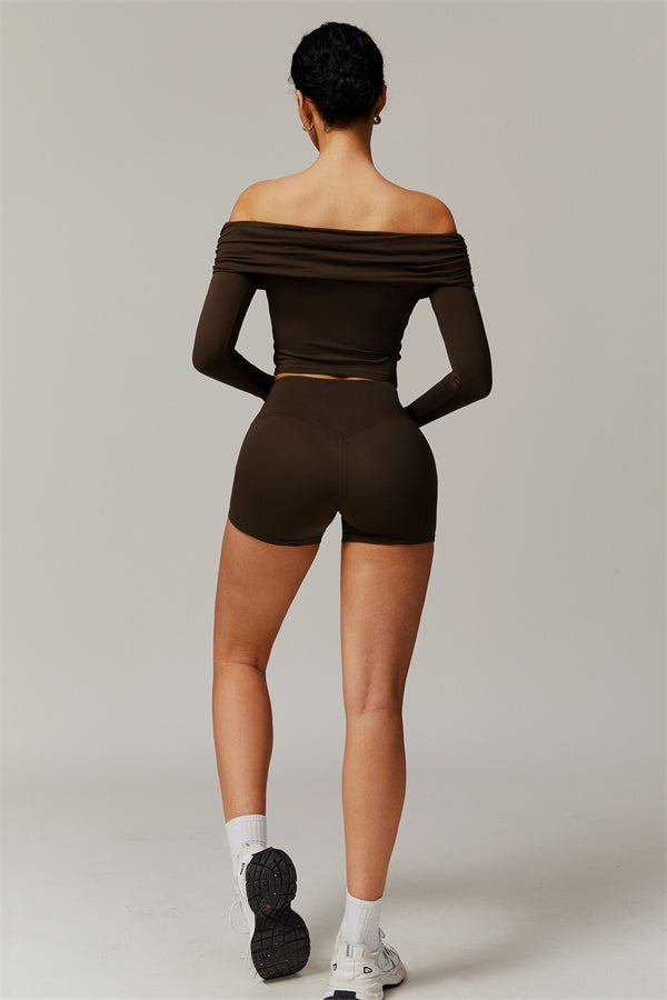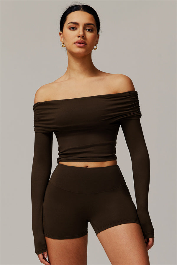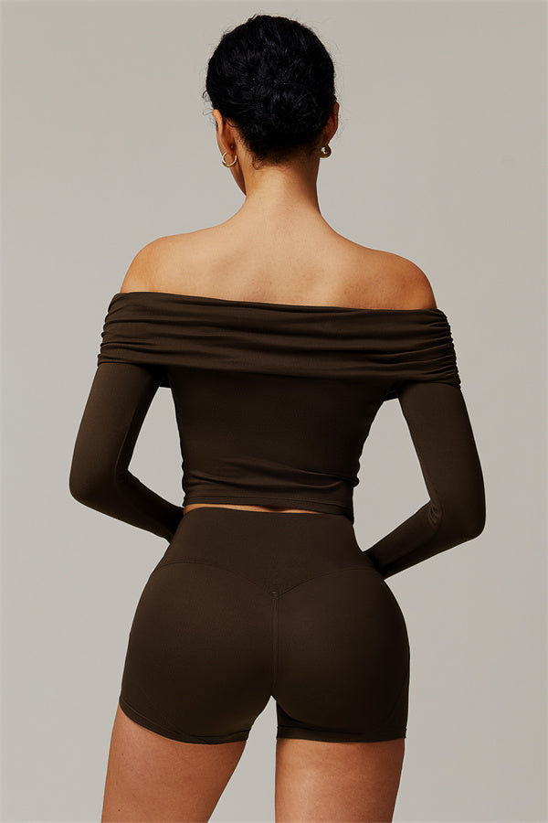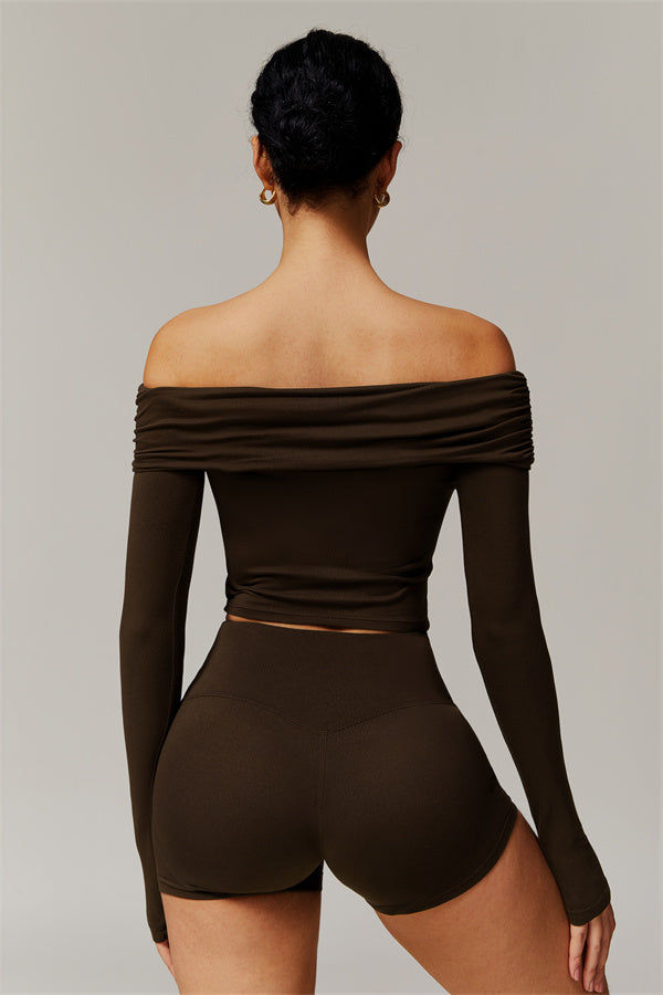 Effortlessly elegant and designed for movement, The Luxe Ruched Long Sleeve Off-Shoulder Top brings together sophistication and functionality. With its off-shoulder design and ruched detailing, this top creates a sleek, feminine silhouette while offering the perfect balance of support and style. Whether you're heading to a workout or styling it for a casual outing, this versatile piece is designed to make a statement.
