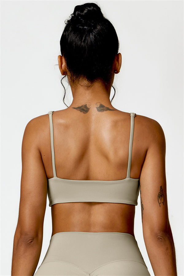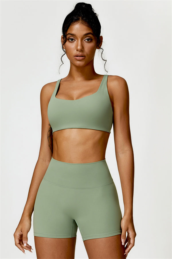 Enhance your workout wardrobe with our beautifully designed sports bra, featuring a sweetheart neckline that accentuates the neck's natural curves. The open-back design highlights your shoulder blades, adding a touch of elegance to your athletic look. Made from durable, stretchy fabric that resists wear and retains its shape, this sports bra is built for performance.