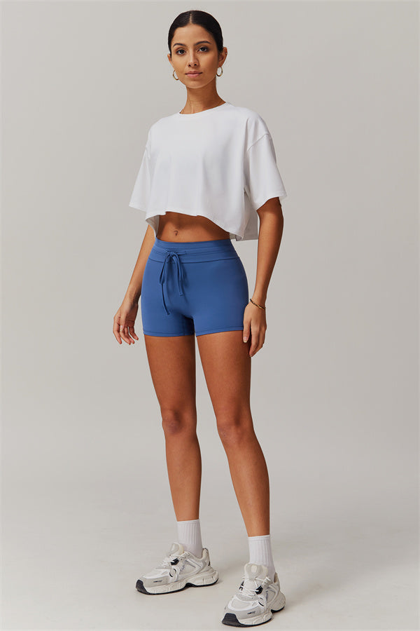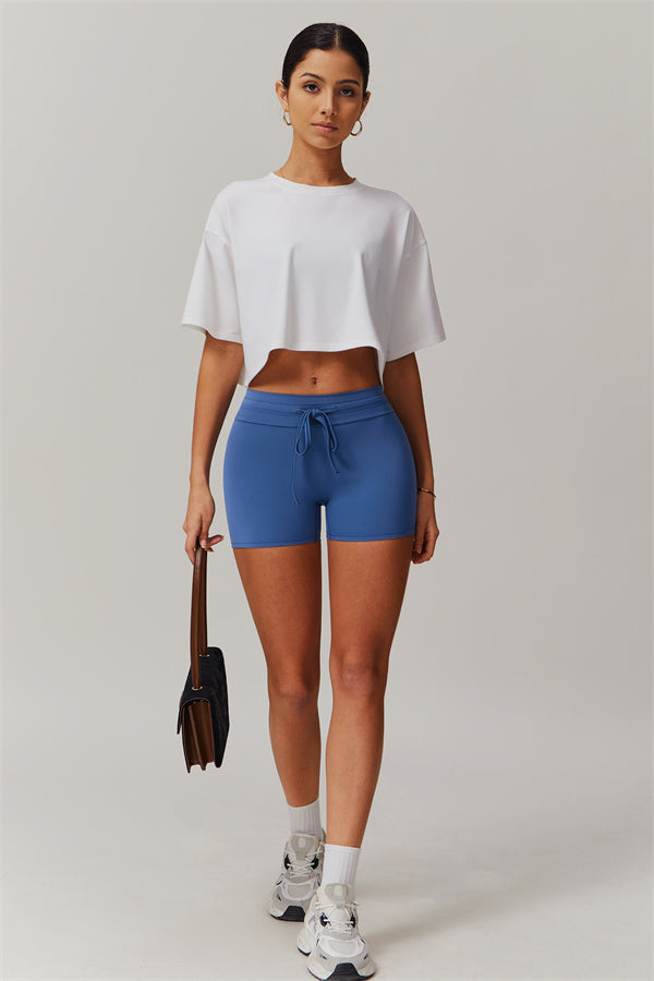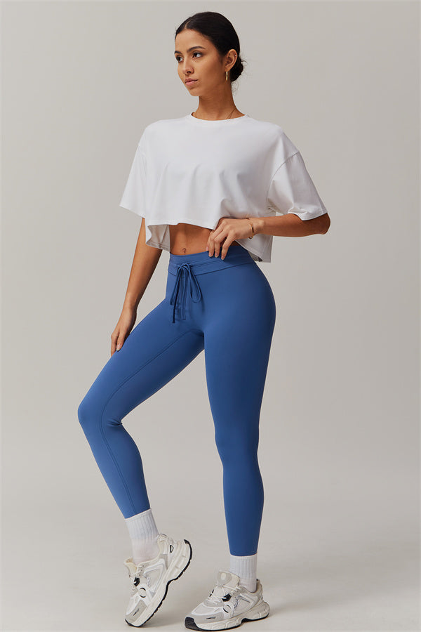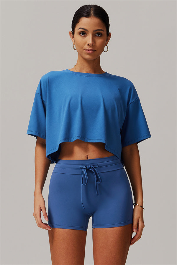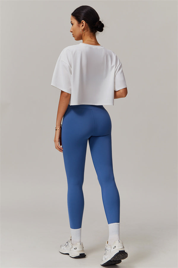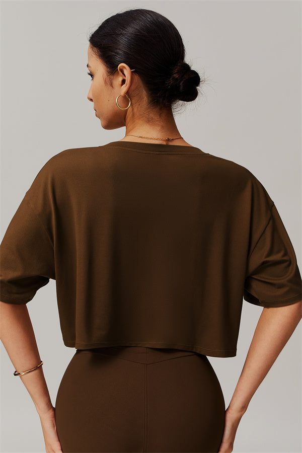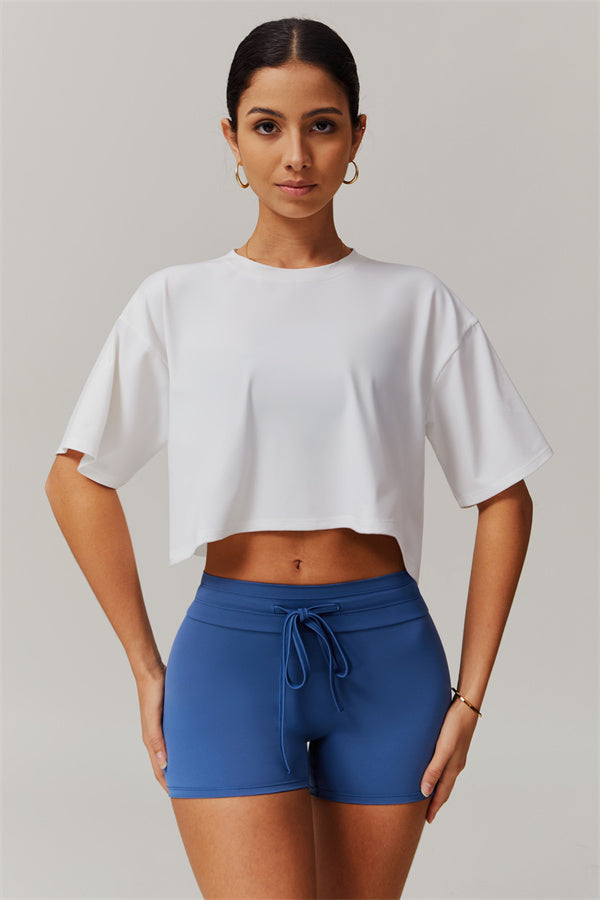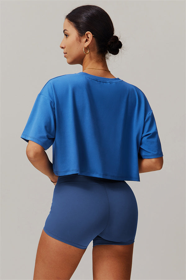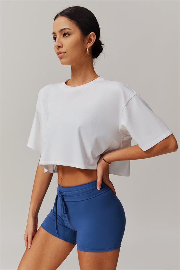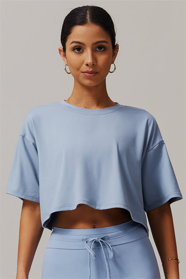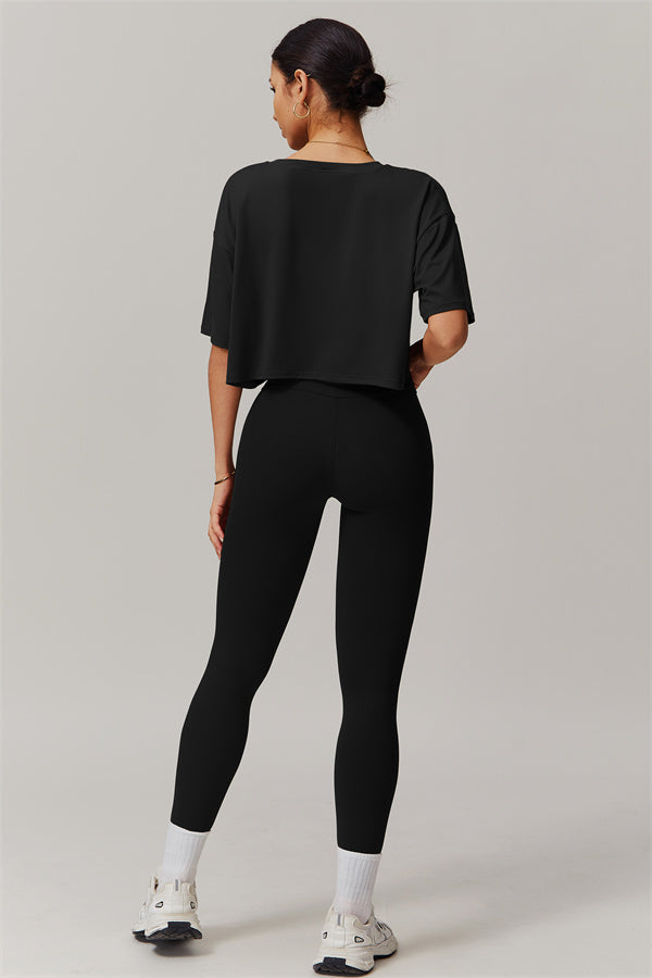 Ideal for pairing with high-waisted leggings or joggers, this cropped T-shirt brings a touch of effortless chic to any active or casual outfit.