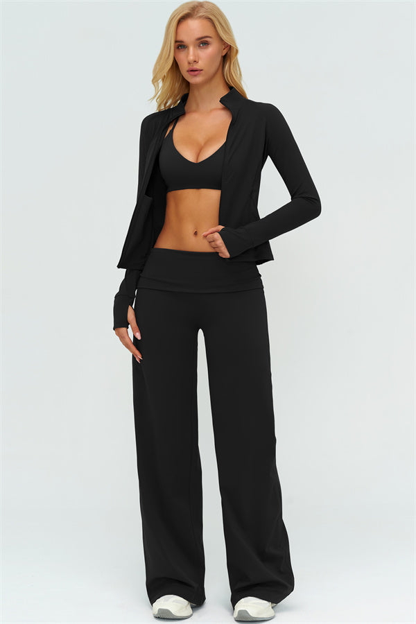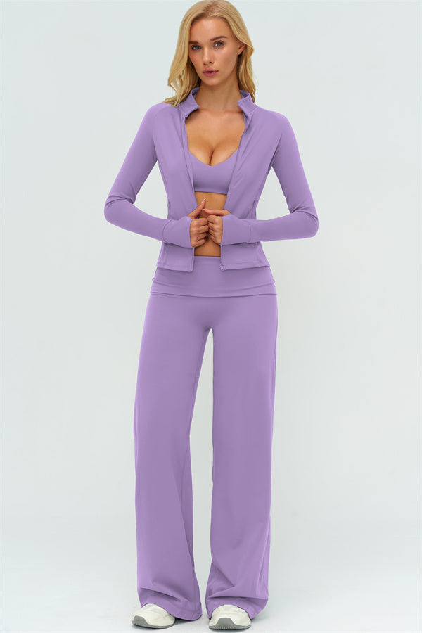 The Twirl Zip Jacket Sports Bra Straight Leg Pants 3-Piece Set
