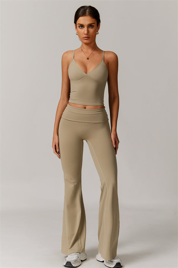 - The flared leg opening creates a fashionable silhouette, visually elongating your legs and offering a refined look that transitions easily from the gym to everyday wear.