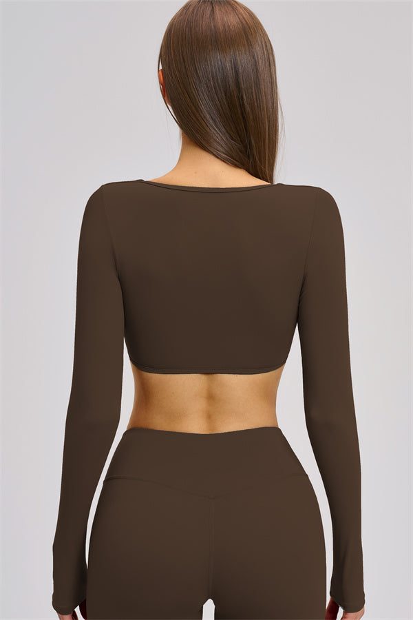 Mid-chest cropped fit with long sleeves for a sleek, flattering look
