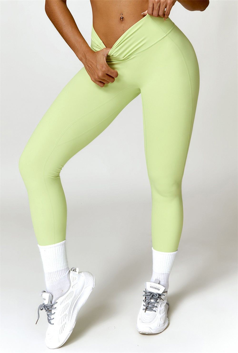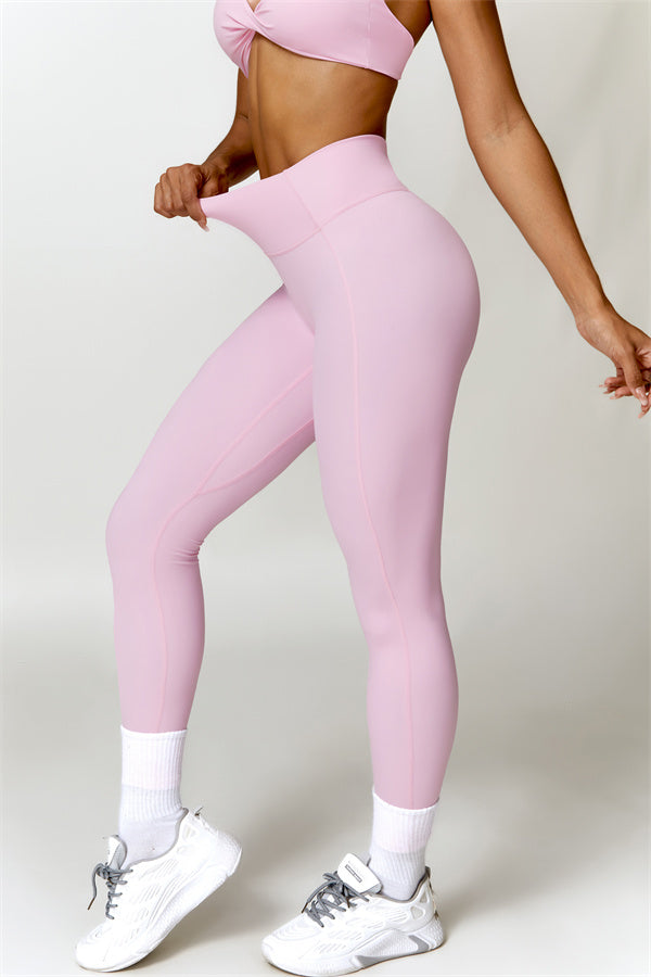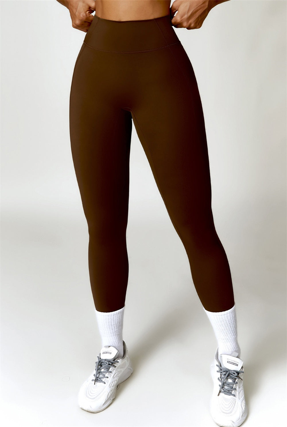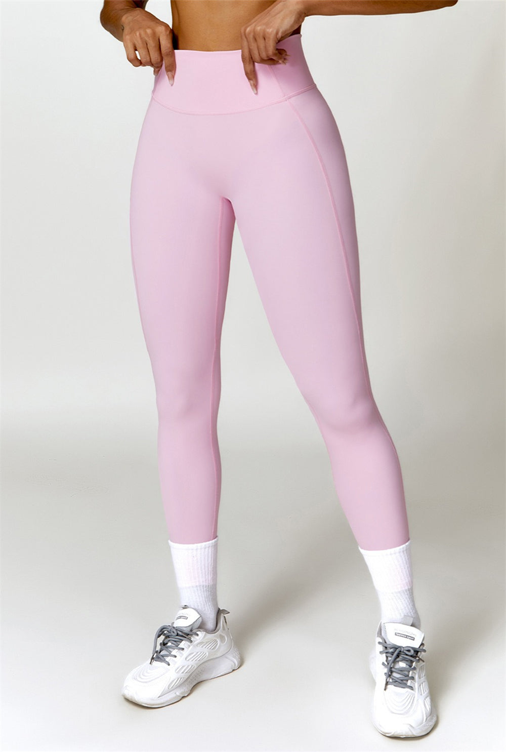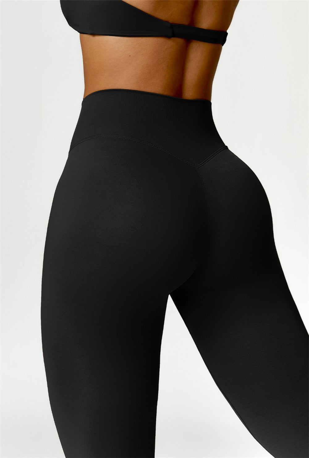 Introducing our sleek leggings designed with a trapezoidal waistband that effectively flattens the tummy and accentuates your waist without digging in. The flattering rear lift design enhances your curves, giving you a fuller and more shapely silhouette.