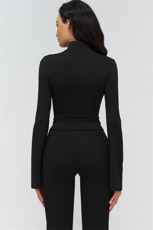 Slim-fit long sleeve silhouette that contours the waist