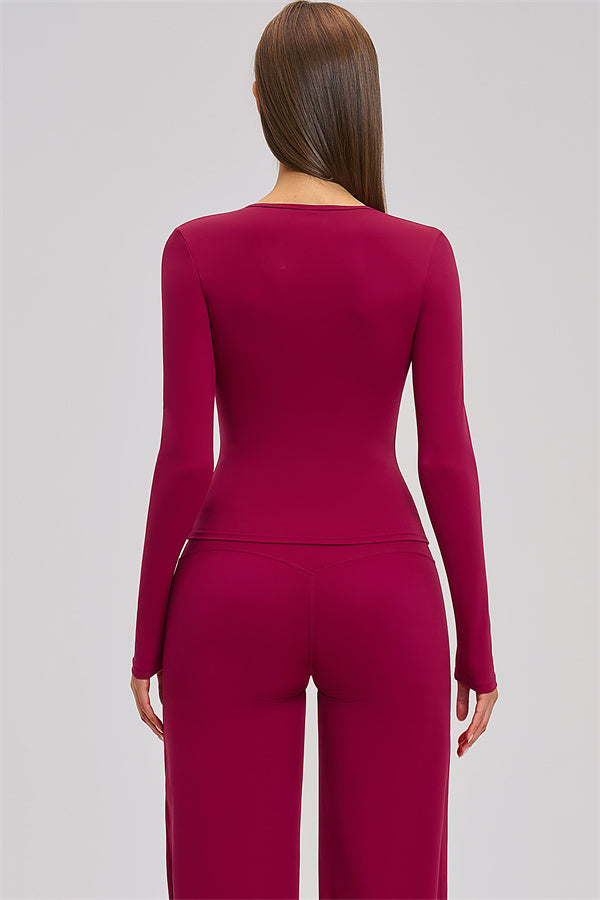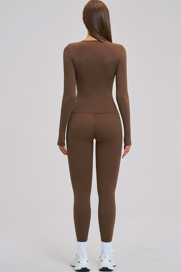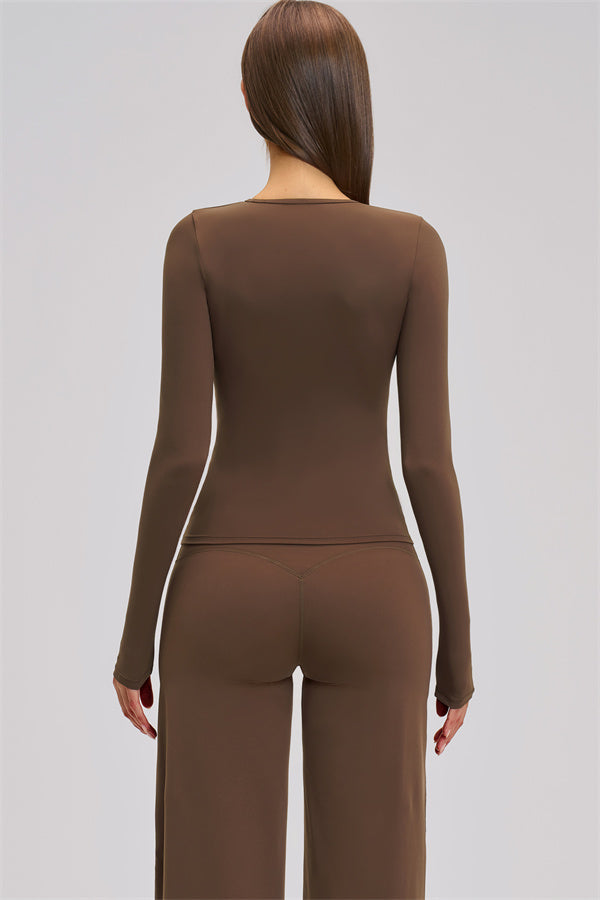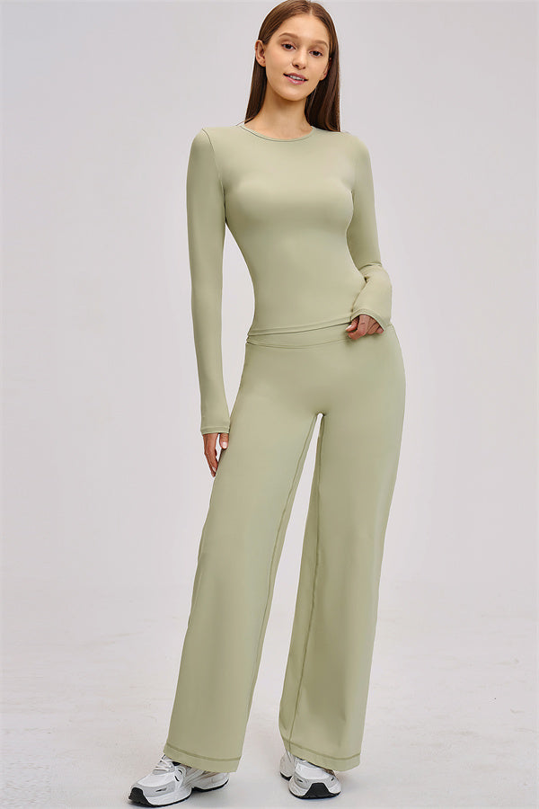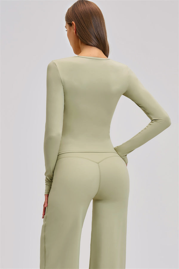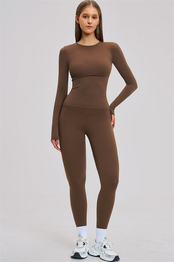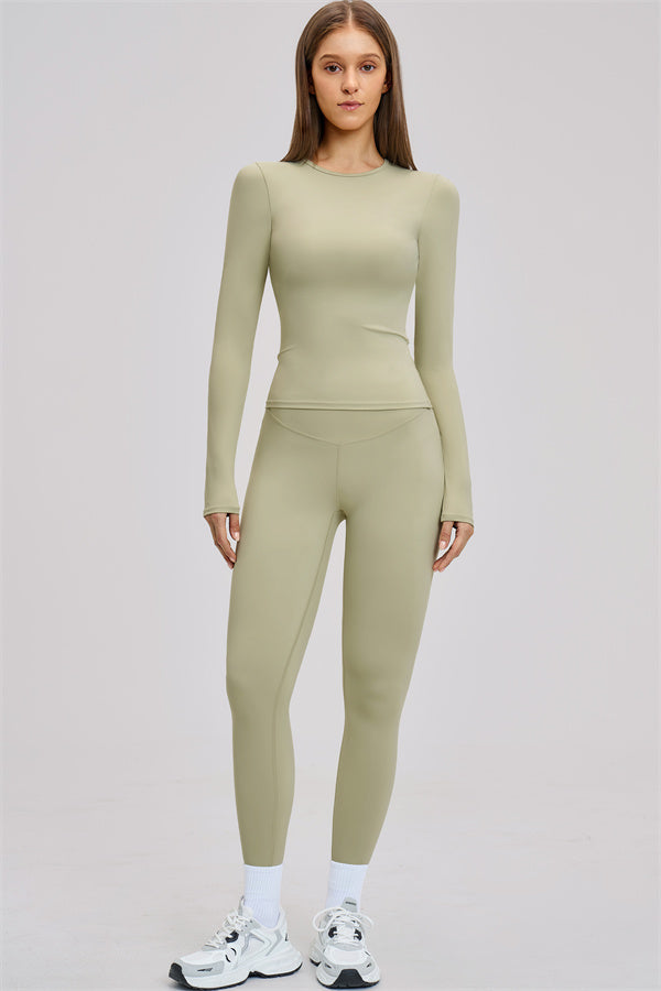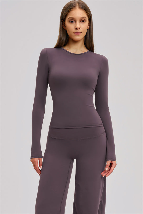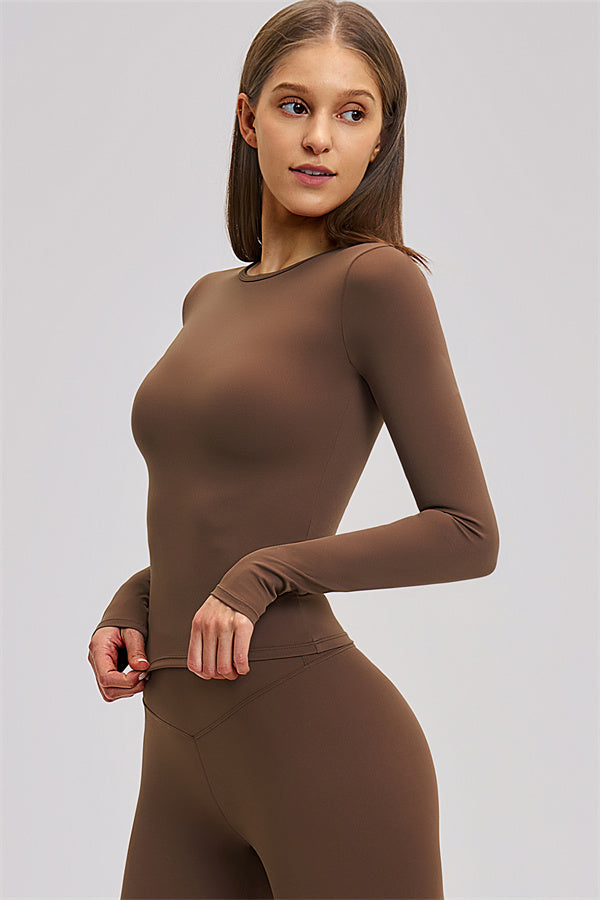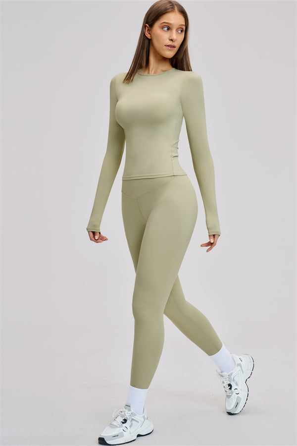 Elevate your activewear collection with this sleek and flattering crop top. Featuring a delicate round neckline, it enhances your necklines while offering a clean, minimalist look. The fitted silhouette highlights your waistline, while the extended hem ensures a comfortable, snug fit that stays in place during every move.