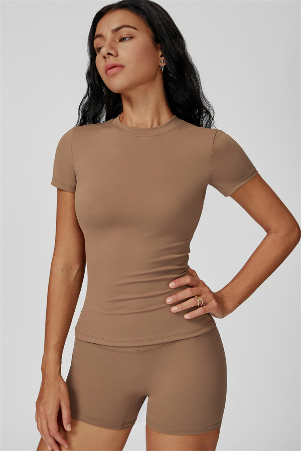 Crafted from a blend of 78% recycled nylon and 22% spandex, these shorts are both soft and flexible, providing just the right amount of stretch. The high-waisted design ensures a secure fit that won't roll down or shift during movement, so you can focus on your workout without distractions.