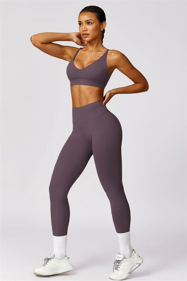 Introducing our high-waisted leggings, designed to provide a secure fit that stays in place during your workouts. The innovative Y-shaped seam on the front enhances your silhouette, offering a flattering and slimming effect while adding stylish dimension.