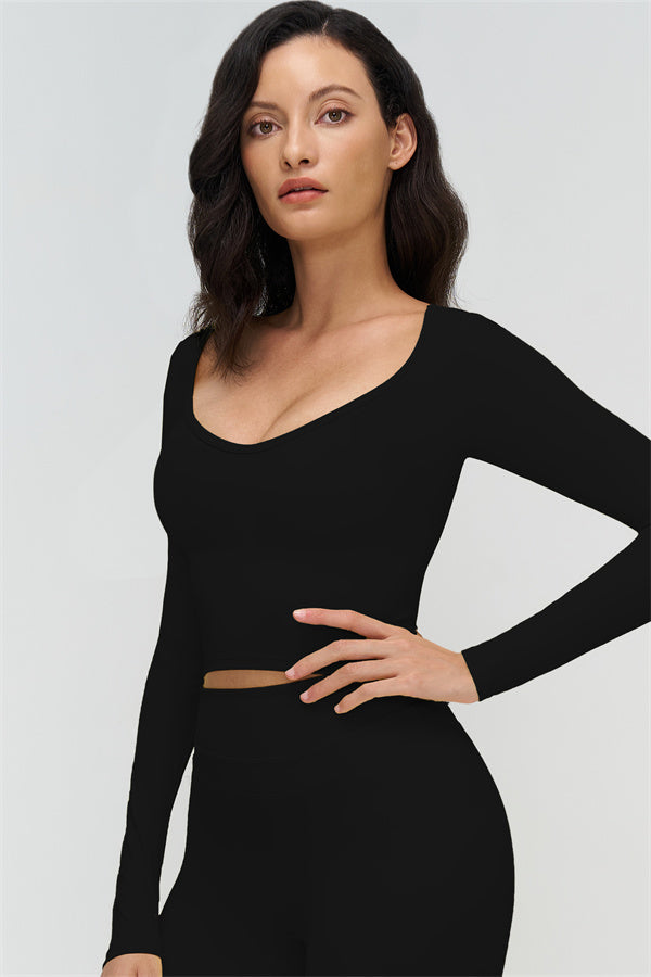 Long sleeves with a waist-length, mid-crop cut to subtly reveal the waistline