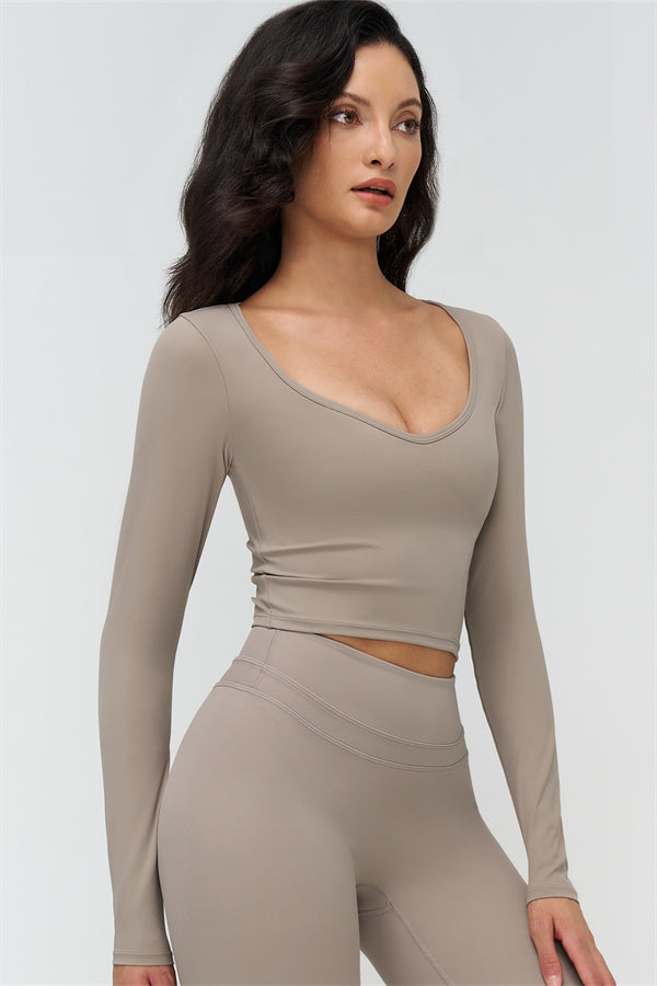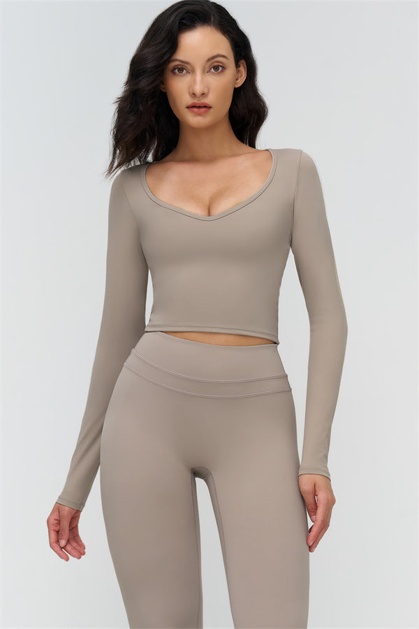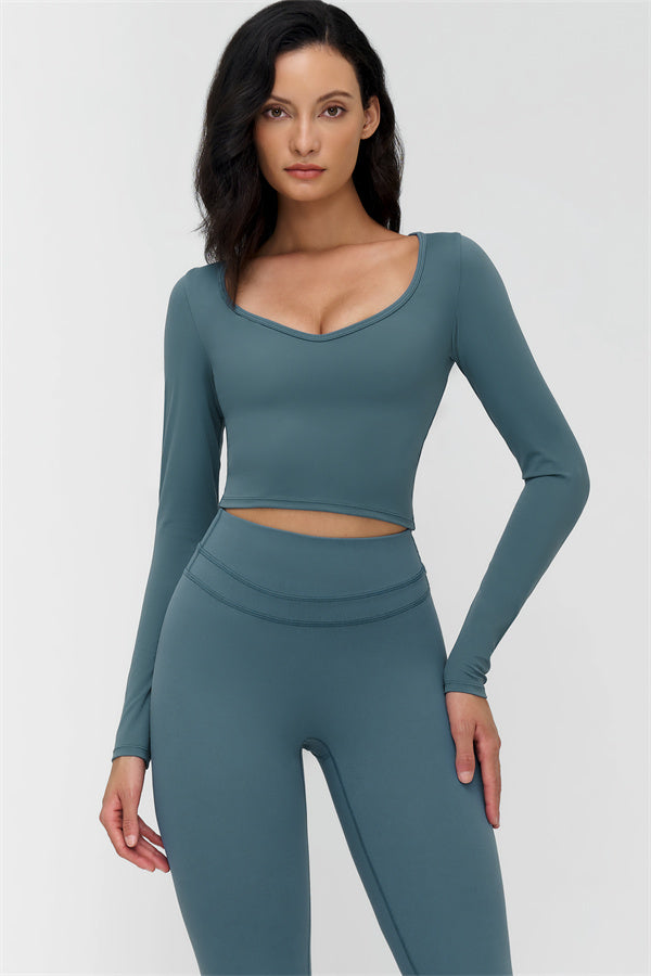 V-neck design accentuates the collarbone and highlights feminine curves