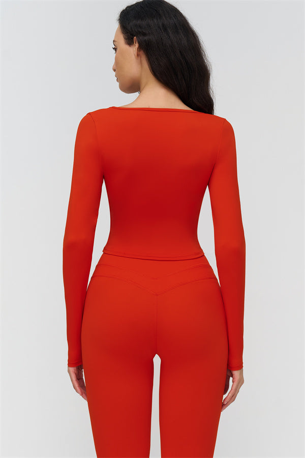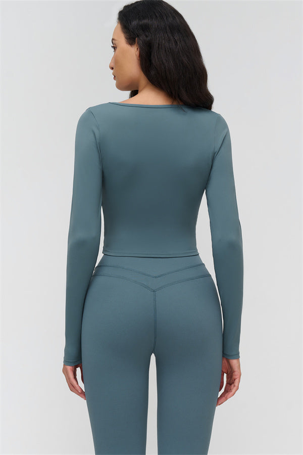 Long-sleeve, mid-length fit reveals the waist subtly
