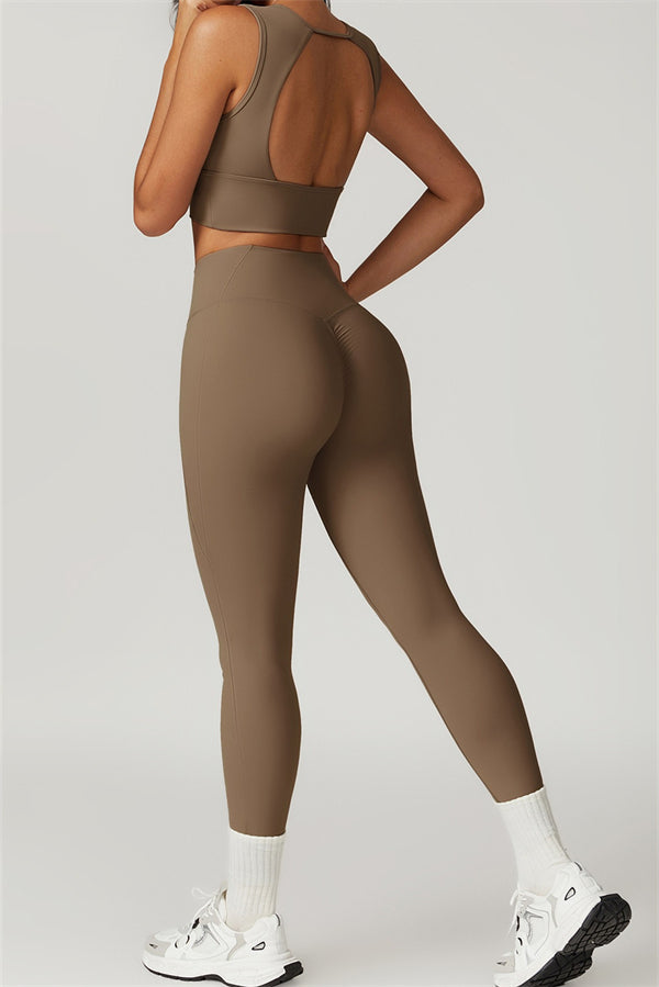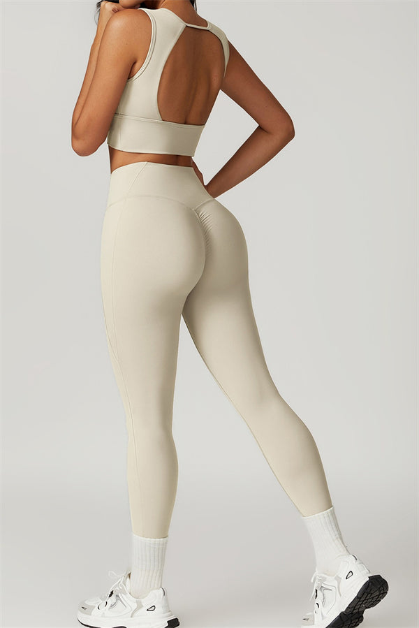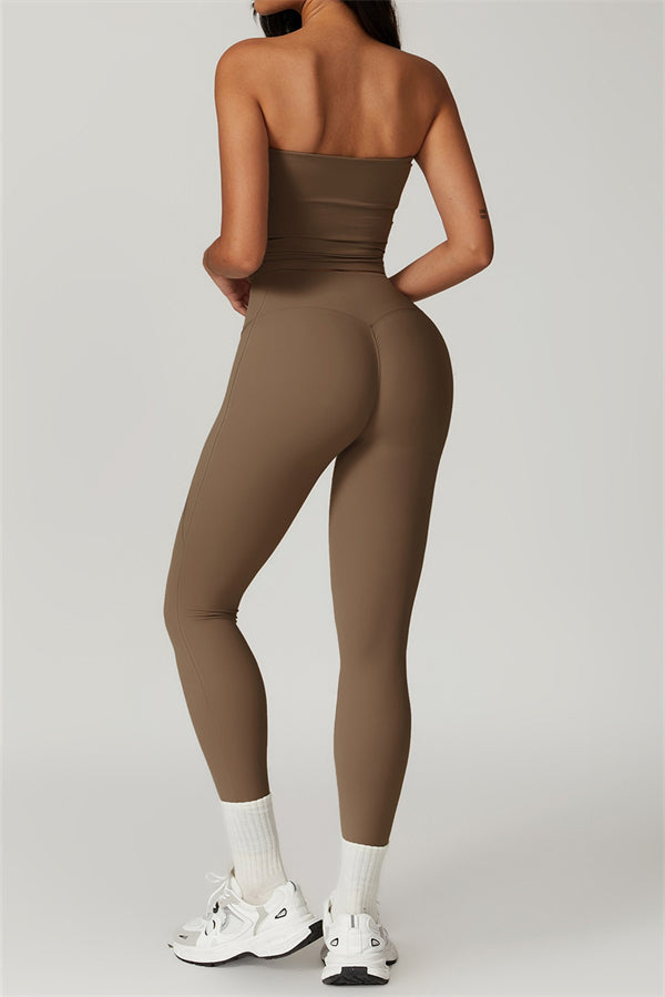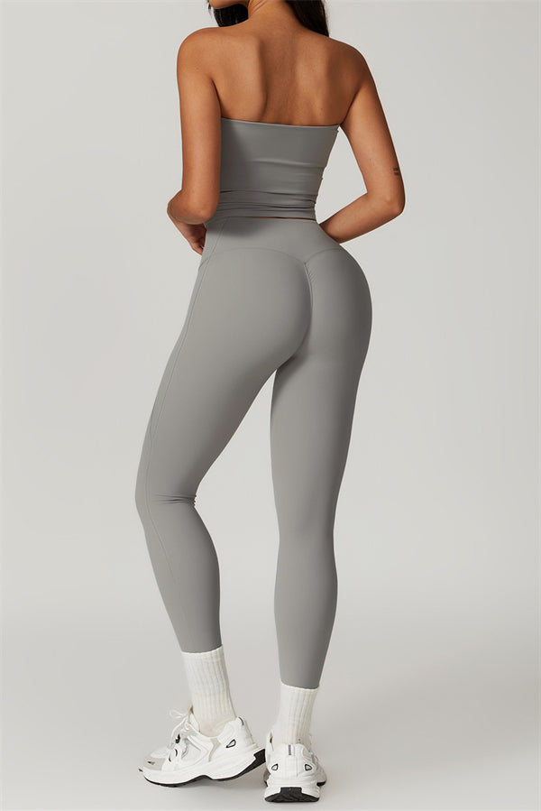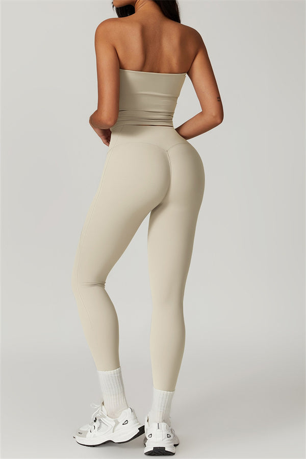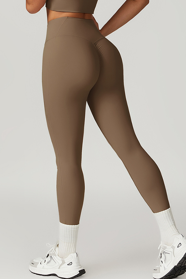 Designed to stay in place and prevent rolling or slipping during any activity. The side seam detailing visually shapes and slims your legs, while the unique ruching at the back enhances your curves for a flattering, peachy look.
